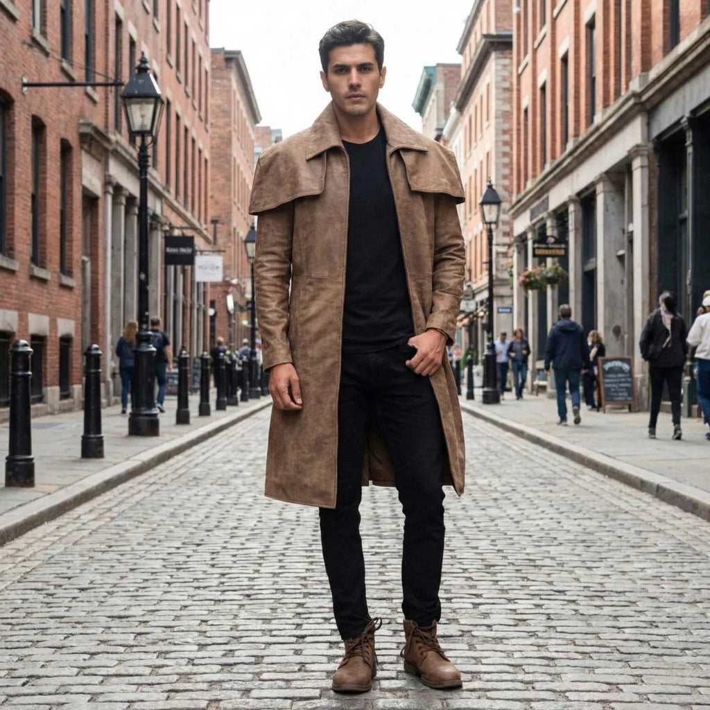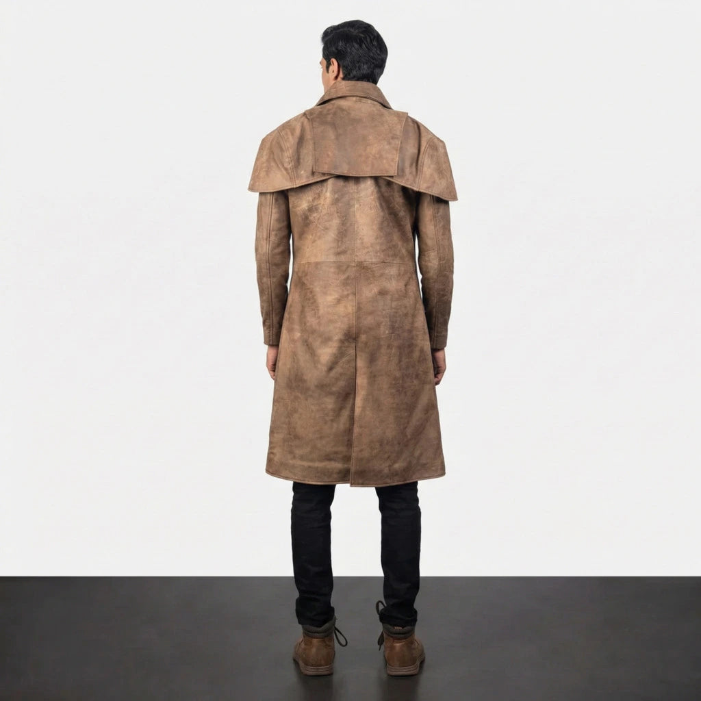 Classic Brown Leather Duster Trench Coat