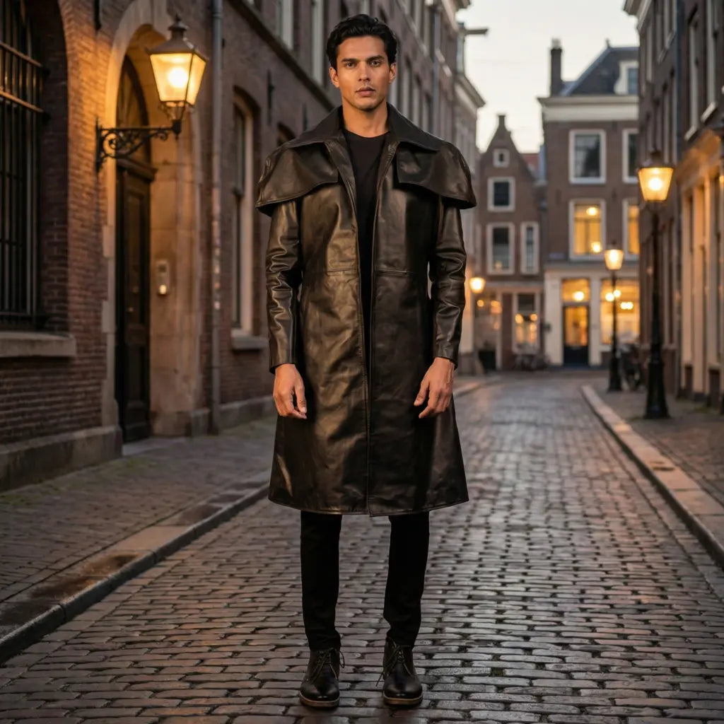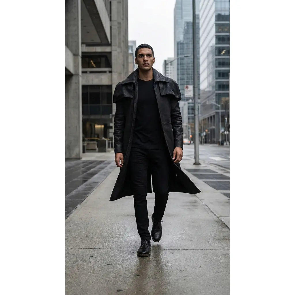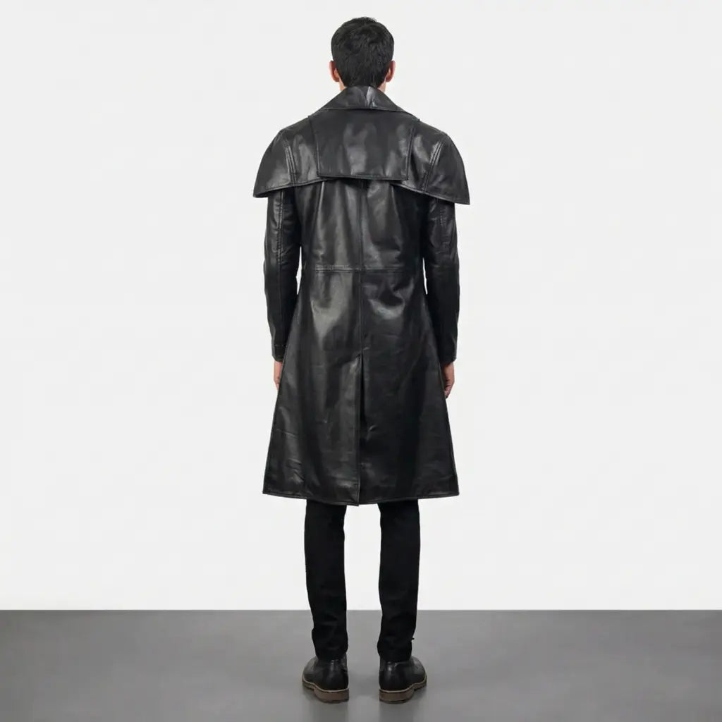 Classic Black Leather Duster Trench coat