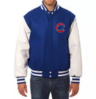 Men Chicago Cubs Letterman Varsity Jacket Blue Wool White Genuine Leather Sleeves - MLB