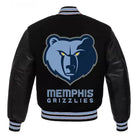 Design: Classic black varsity jacket with Memphis Grizzlies logo embroidery.