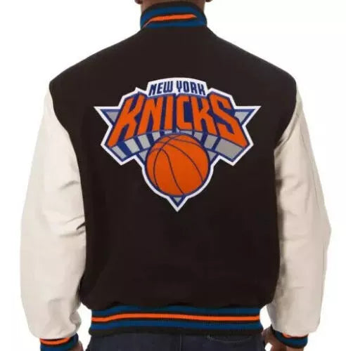 Cheer for the New York Knicks in style and comfort with this Black and White Letterman Varsity Jacket — the perfect choice for every young fan looking to represent their team!