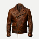 Embrace Heroic Style with the Captain America Distressed Brown Biker Jacket