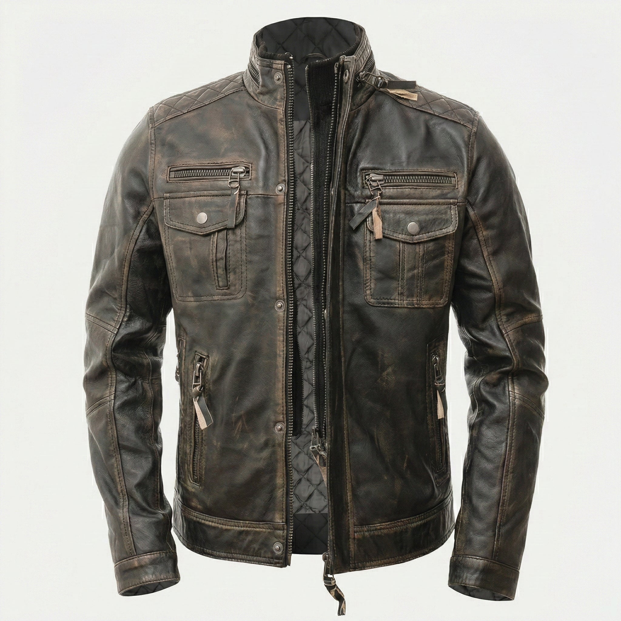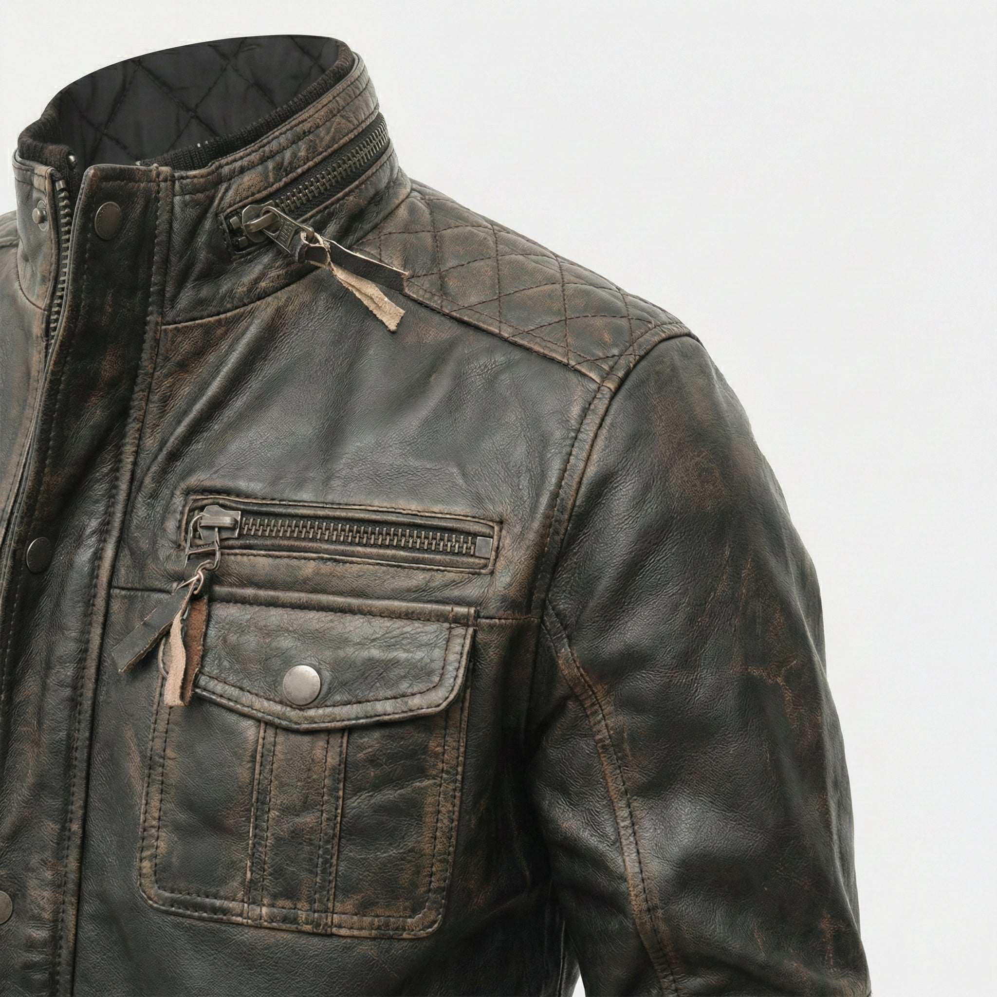 - Classic Cafe Racer Design – Iconic motorcycle styling with a slim, tailored fit