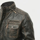 Men's Distressed Brown Cafe Racer Leather Jacket (2Xs - 4XL + Custom)