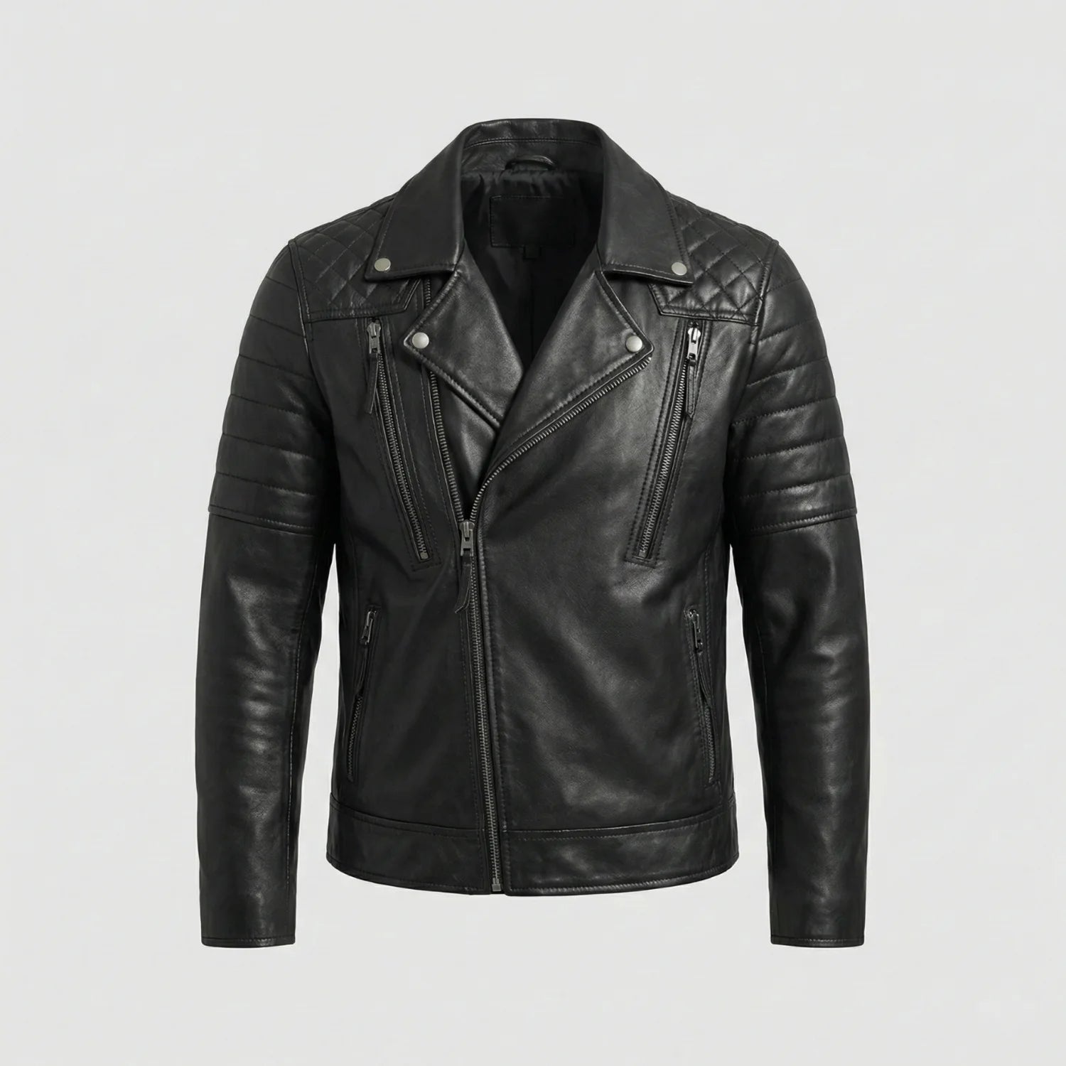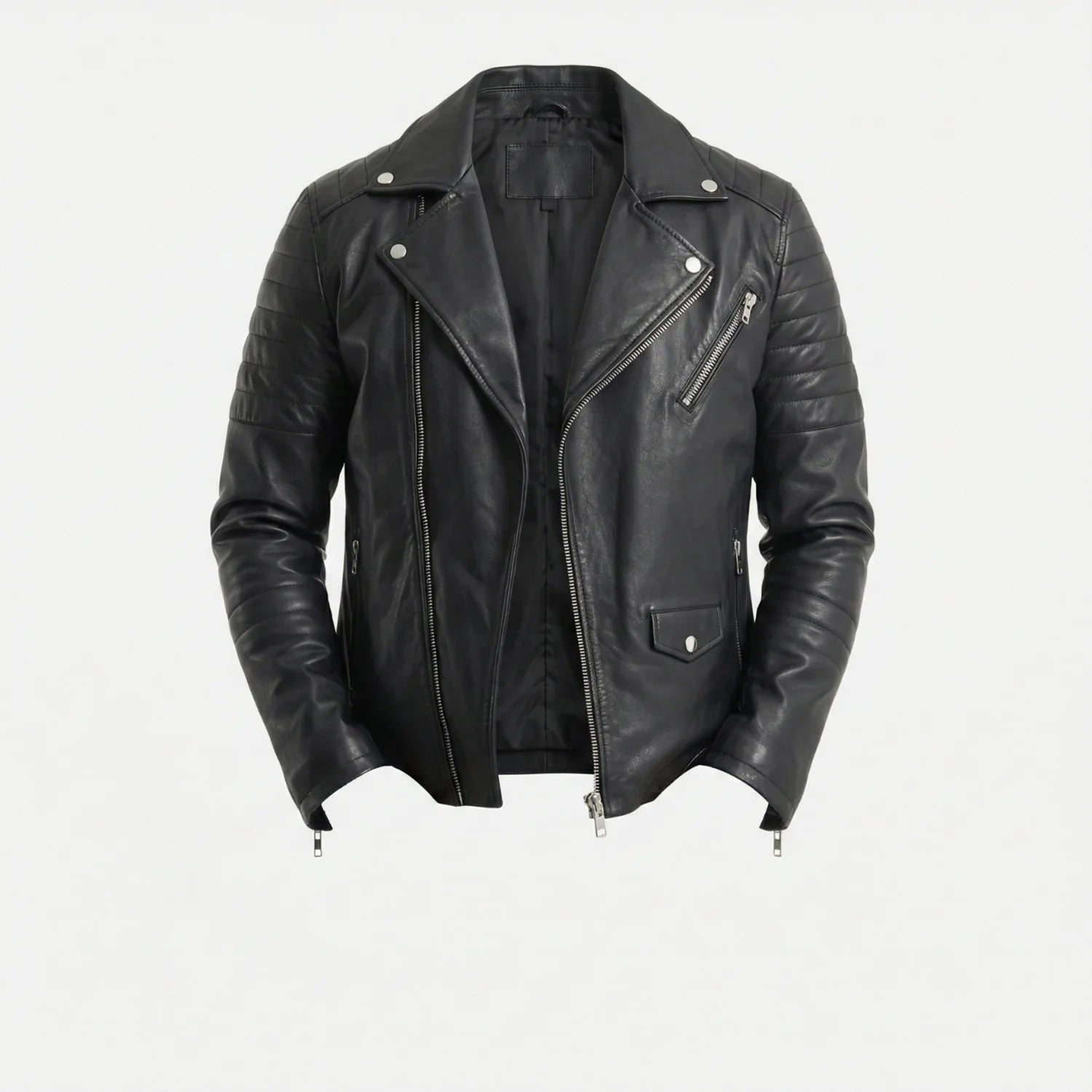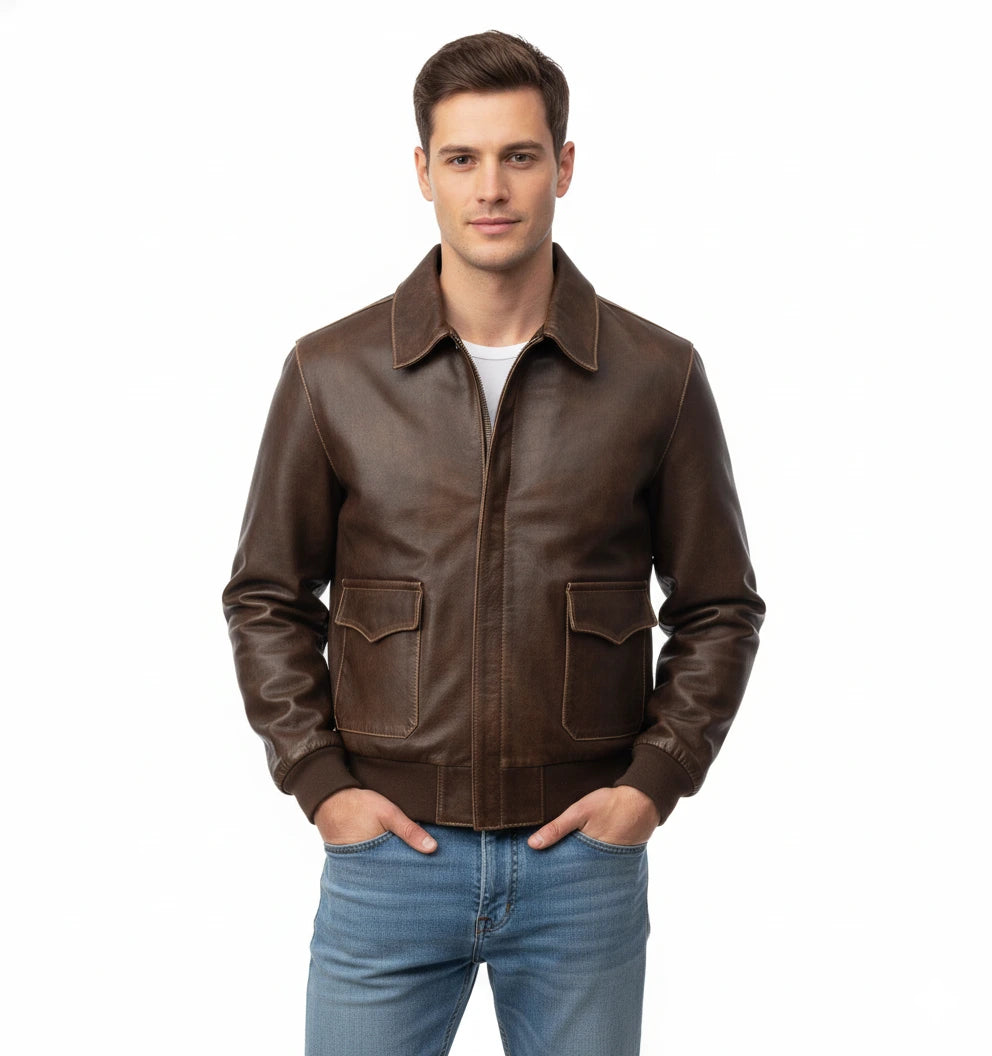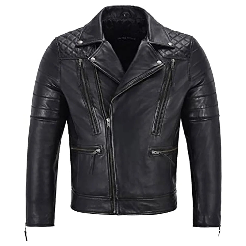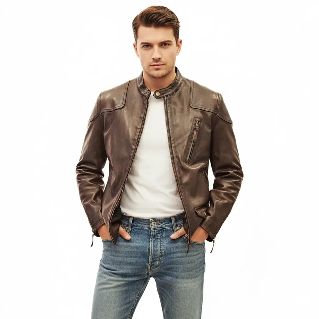 Premium men's leather jackets in biker, bomber, racer and classic styles. Explore motorcycle leather jackets with asymmetric zippers, vintage bomber jackets with ribbed cuffs, cafe racer designs, flight jackets, trucker styles, moto jackets with quilted shoulders and contemporary minimalist designs. Features include genuine leather construction, YKK zippers, multiple pockets, interior lining and expert craftsmanship. Perfect for motorcycle riders, everyday style and timeless leather outerwear that ages beautifully!