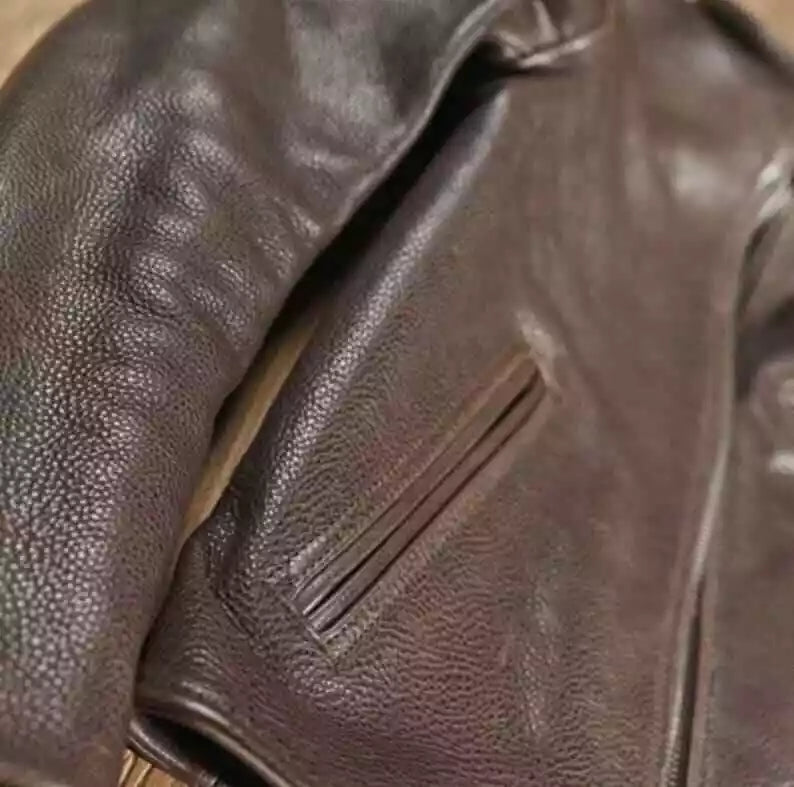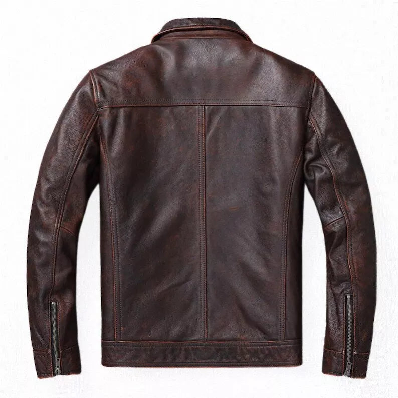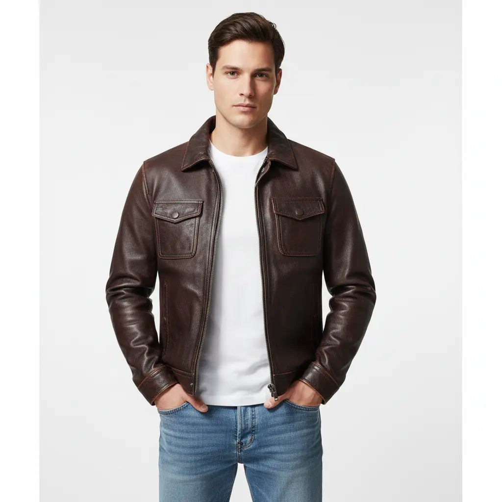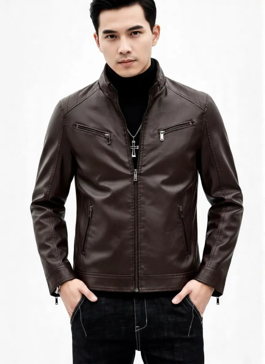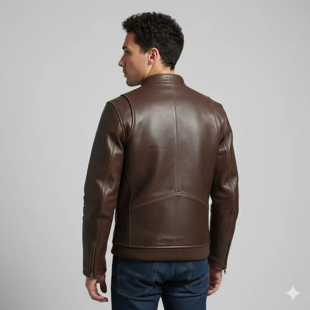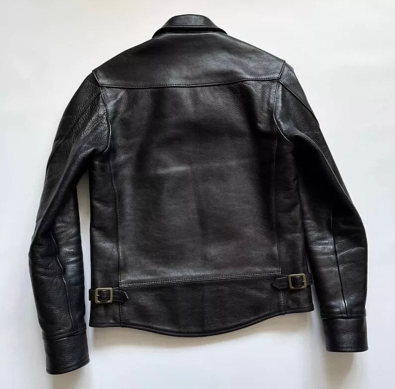 Premium men's leather jackets in biker, bomber, racer and classic styles. Explore motorcycle leather jackets with asymmetric zippers, vintage bomber jackets with ribbed cuffs, cafe racer designs, flight jackets, trucker styles, moto jackets with quilted shoulders and contemporary minimalist designs. Features include genuine leather construction, YKK zippers, multiple pockets, interior lining and expert craftsmanship. Perfect for motorcycle riders, everyday style and timeless leather outerwear that ages beautifully!