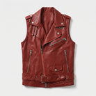 The Men’s Slim Fit Biker Asymmetrical Zipper Red Leather Vest is the perfect piece for those who want to make a statement. Whether you’re riding your bike or simply want to add a stylish, edgy layer to your wardrobe, this vest offers both functionality and bold fashion