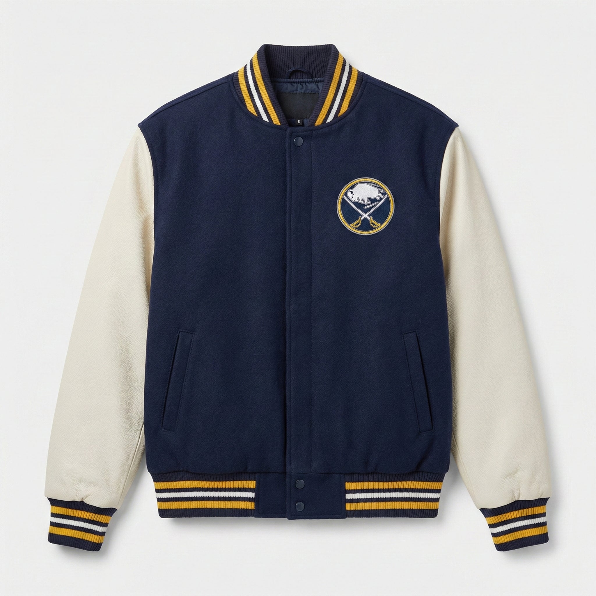 NHL Men's Buffalo Sabres Blue and White Varsity Jacket