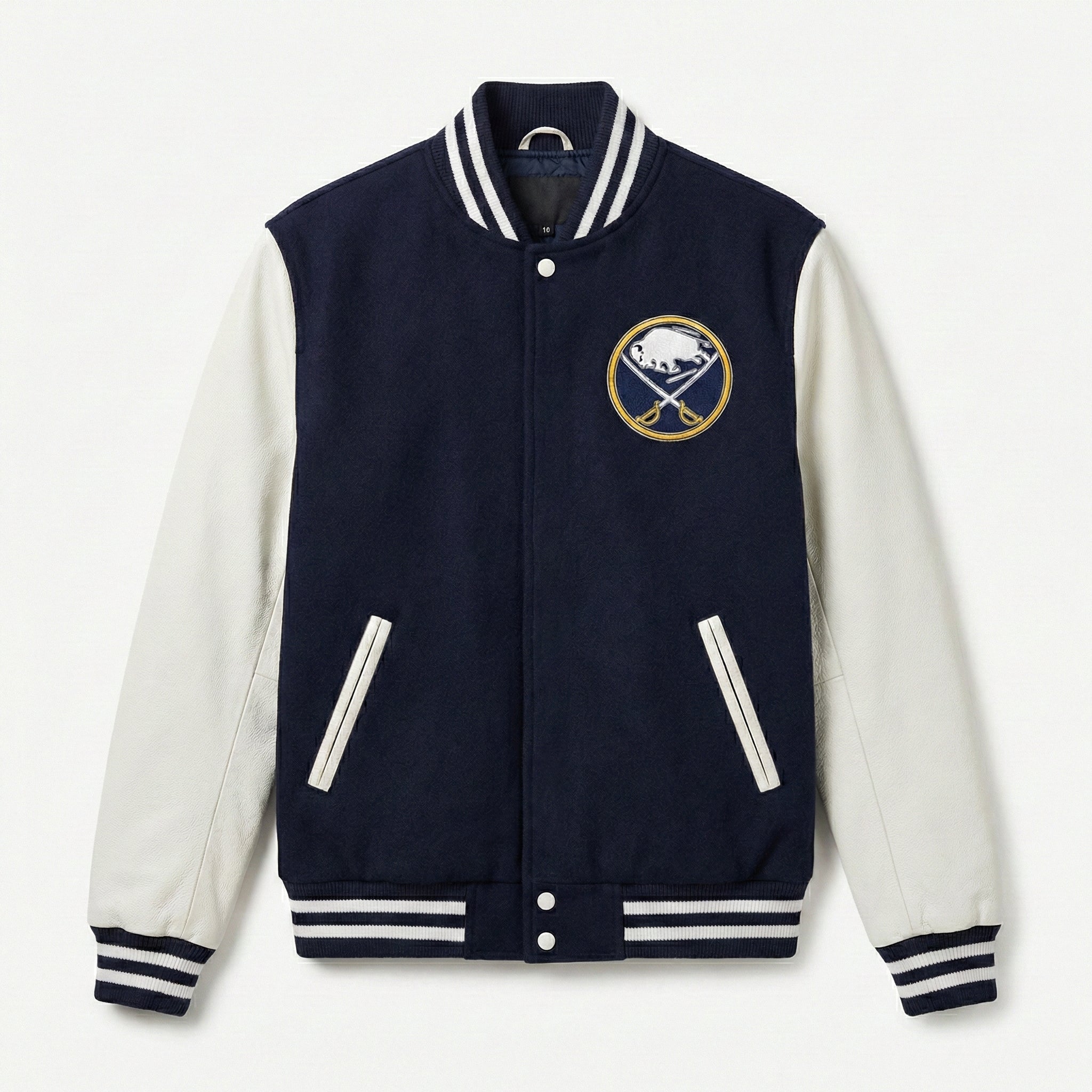 NHL Men's Buffalo Sabres Navy and White Varsity Jacket