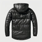 Men's Black Hooded Puffer Jacket – Genuine Lambskin Leather