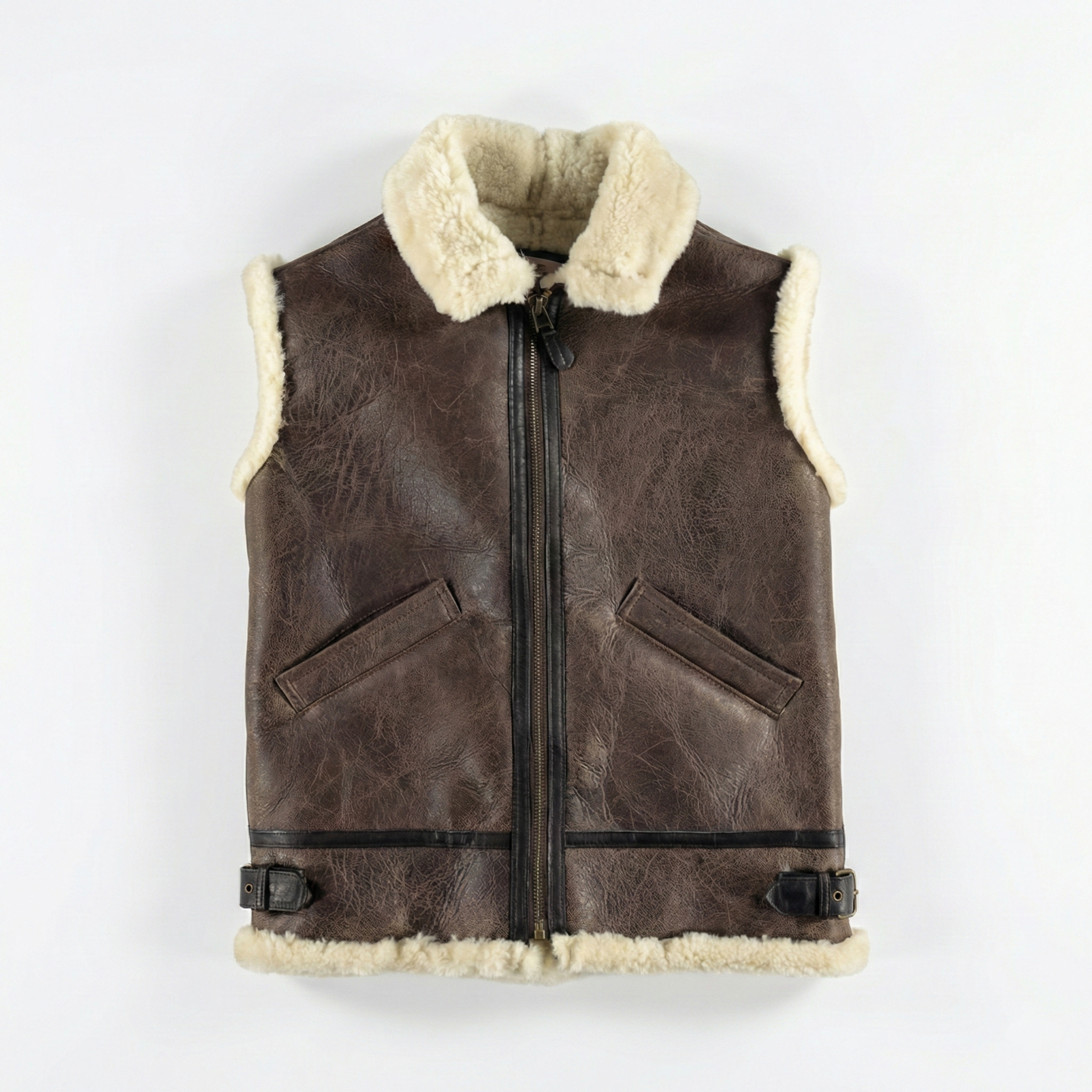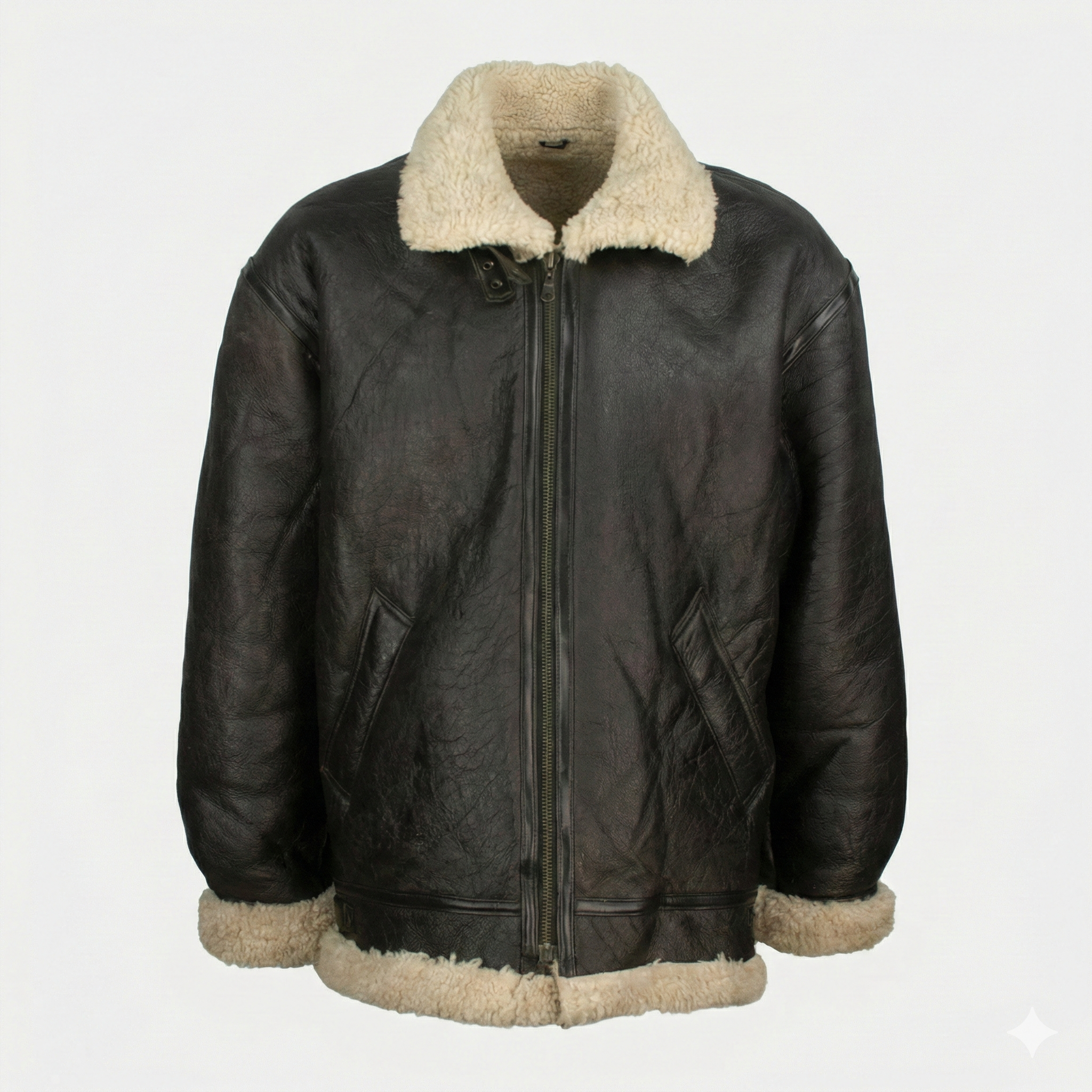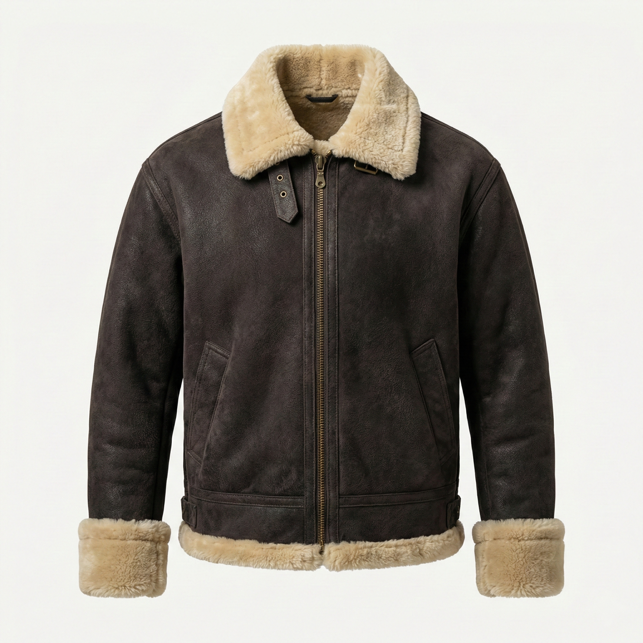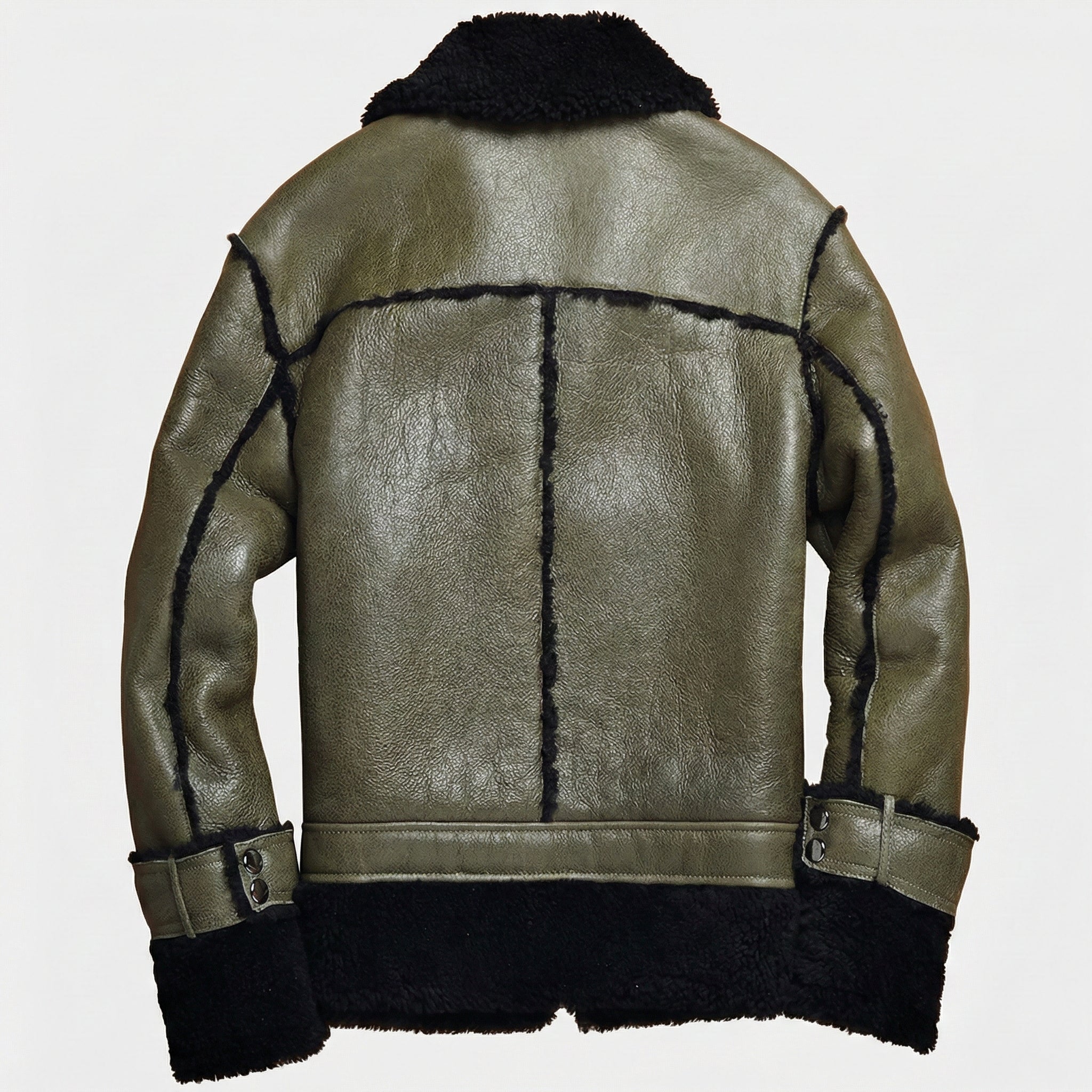 Premium men's shearling jackets in aviator, bomber, biker and classic coat styles. Explore B3 flight jackets, shearling-lined leather bombers, motorcycle-inspired designs, long shearling coats and vintage aviator styles. Each jacket features genuine sheepskin leather exterior, natural shearling fur lining and authentic details like buckled collars, zippered pockets and belted waists for ultimate warmth and timeless style.