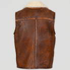 Men's Brown Aviator RAF B3 Shearling Bomber Real Sheepskin Leather Fur Vest