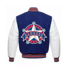 Texas Rangers Letterman Varsity Jacket - Blue & White with Leather Sleeves