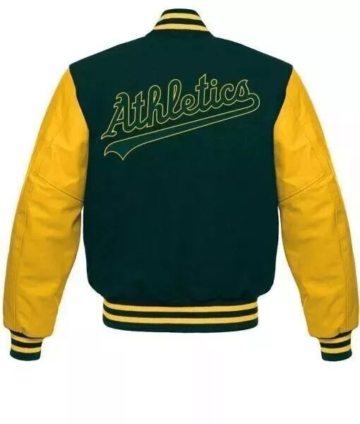 Oakland Athletics Green & Yellow Varsity Jacket With Leather Sleeves - MLB