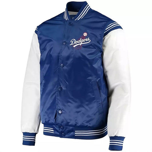 Rep the Dodgers in standout style with this Los Angeles Dodgers Blue Satin Varsity Jacket....