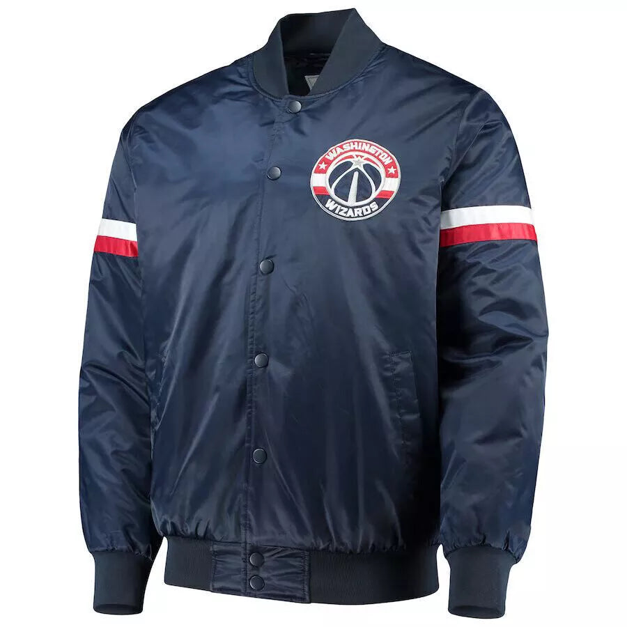 Washington Wizards Navy Blue Satin Letterman Varsity Jacket - NBA