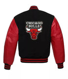 CHICAGO BULLS NBA FANS LETTERMAN VARSITY JACKET WITH GENUINE LEATHER SLEEVES red and black - NBA