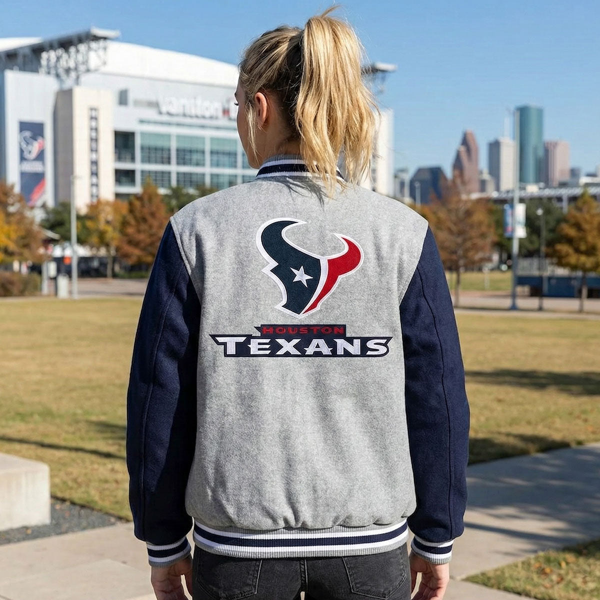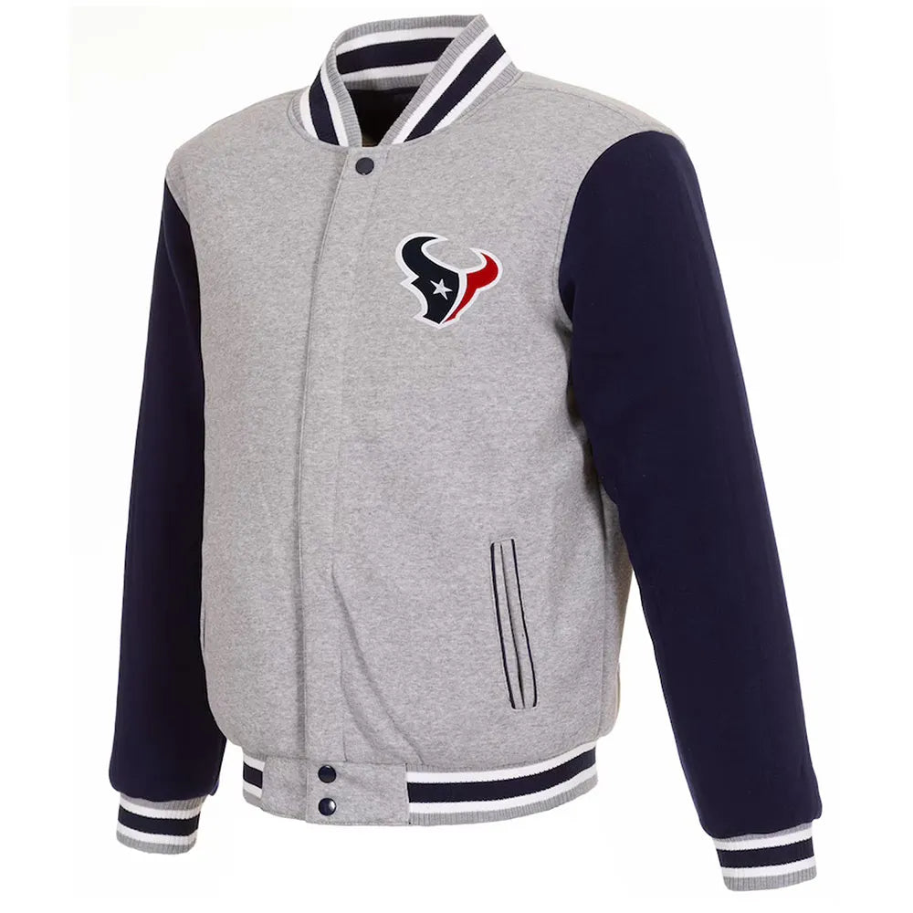 Womens Houston Texans Gray and Navy Varsity Wool Jacket - NFL