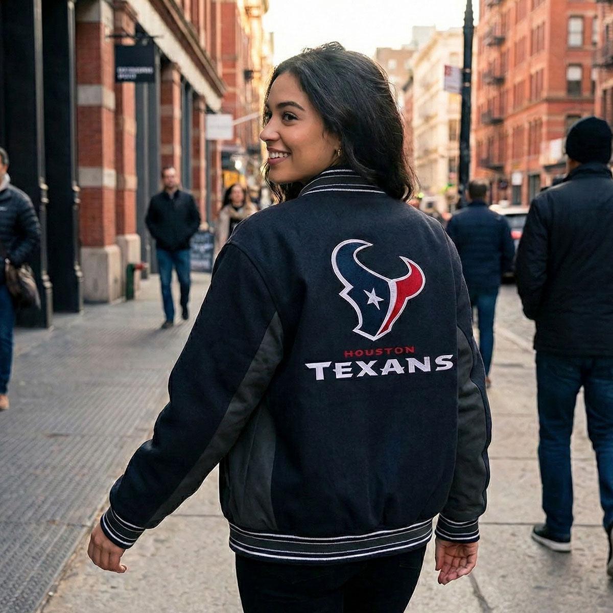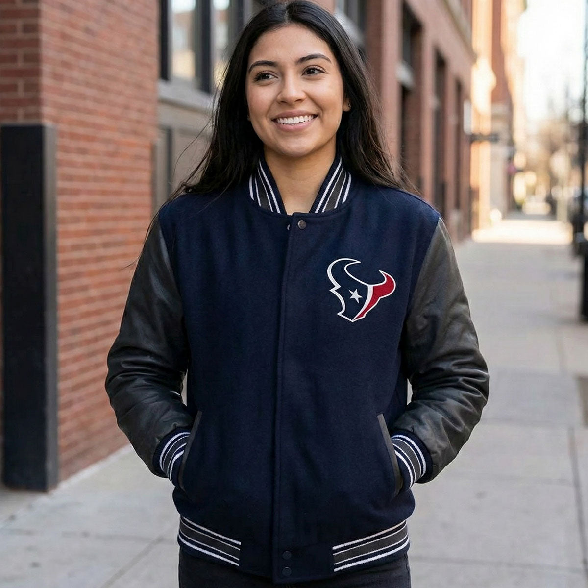 Womens Houston Texans Charcoal and Navy Varsity Jacket - NFL