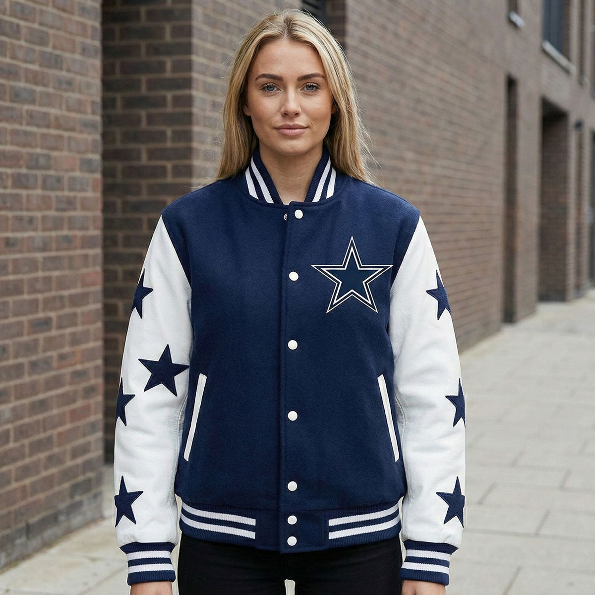 Dallas Cowboys Stars Royal Blue and White Varsity Jacket - NFL