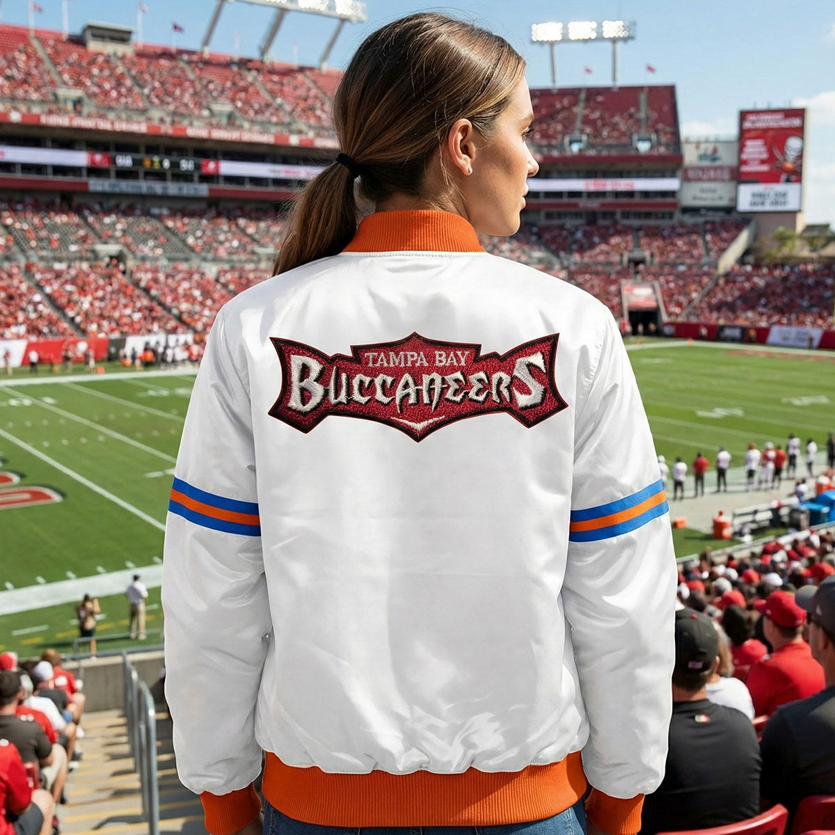 Tampa Bay Buccaneers Vintage 80s White Satin Bomber Baseball Varsity Jacket - NFL