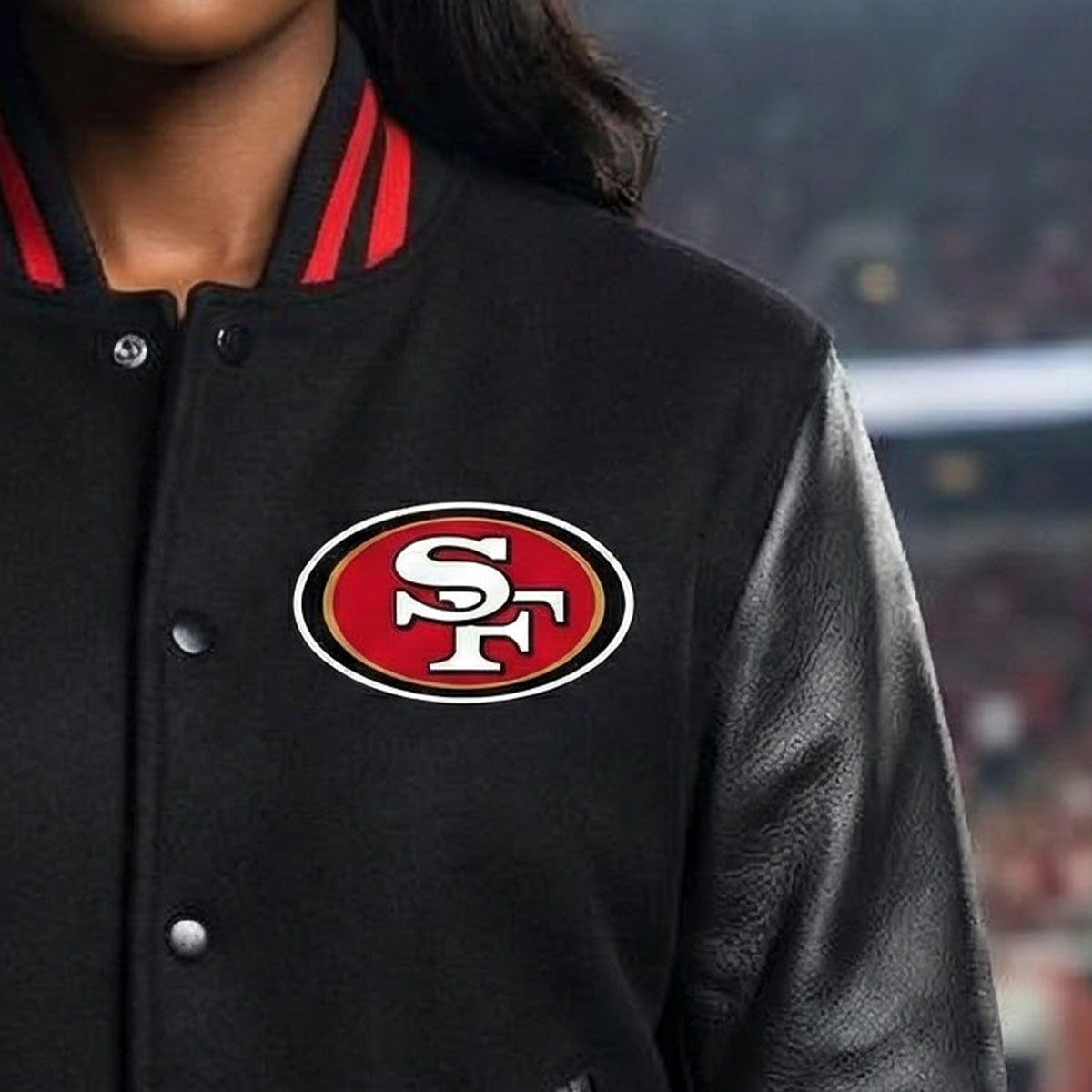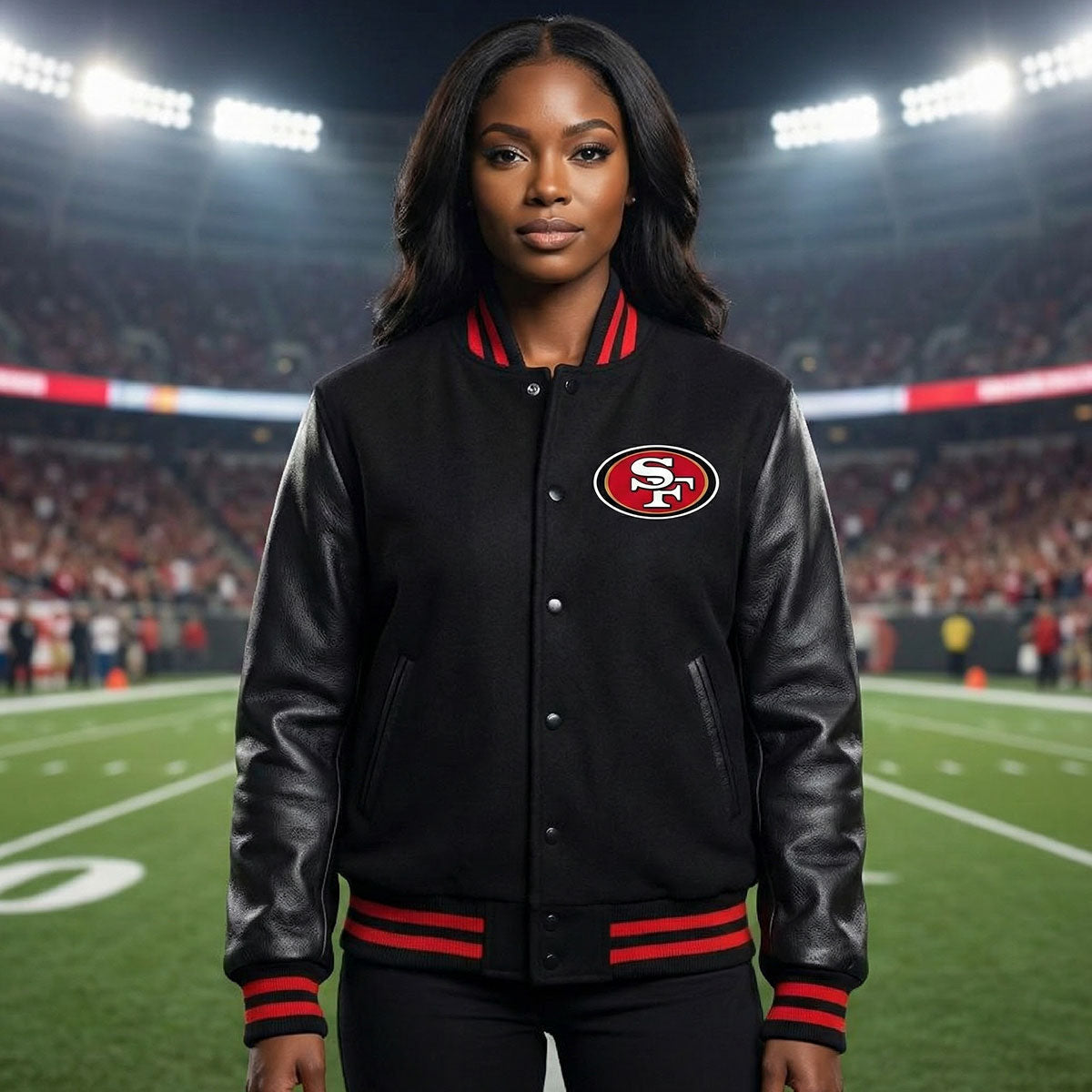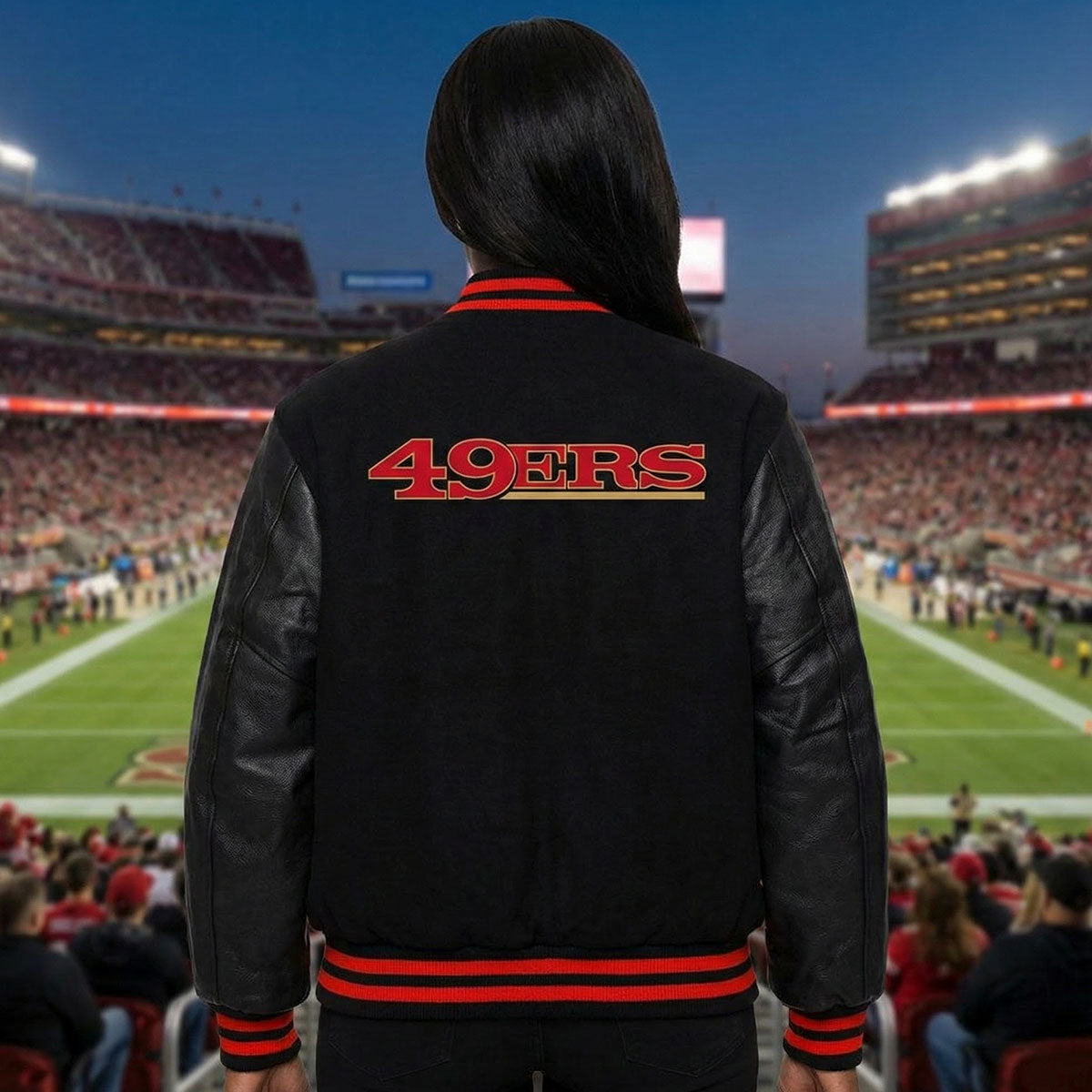San Francisco 49ers NFL Varsity Jacket with Genuine Leather Sleeves black