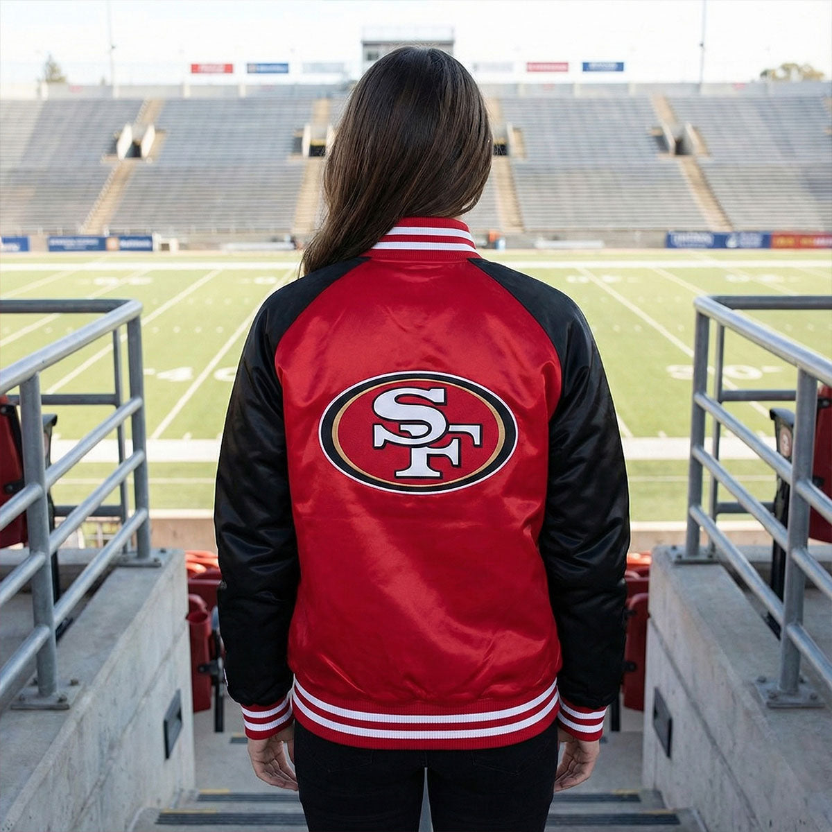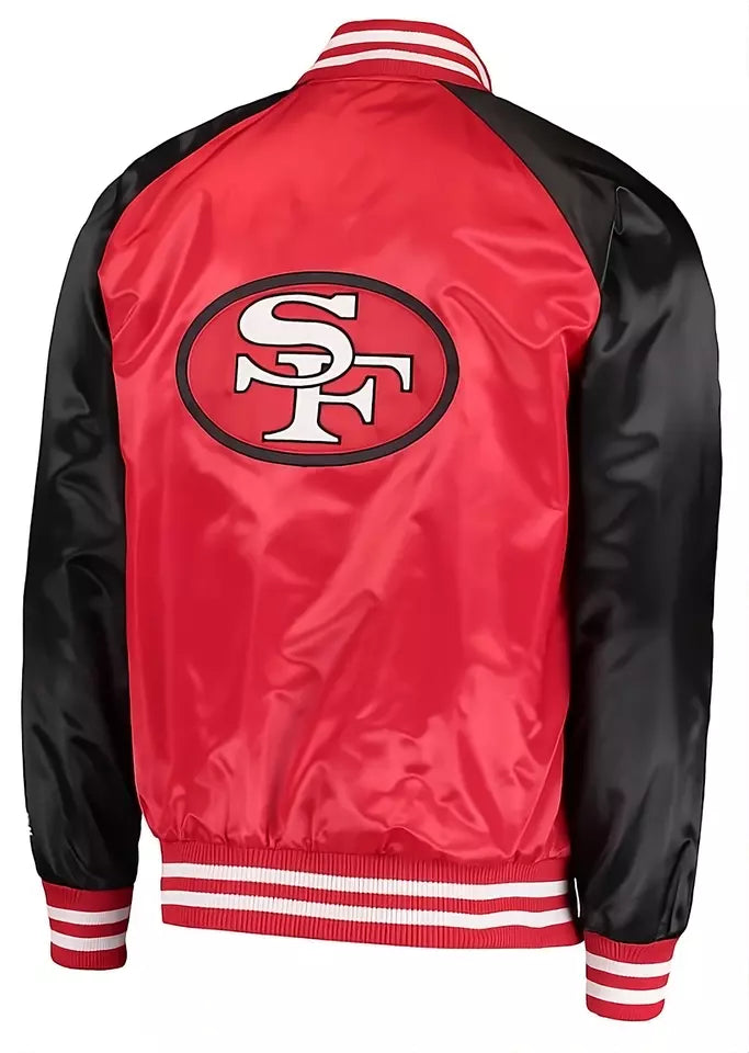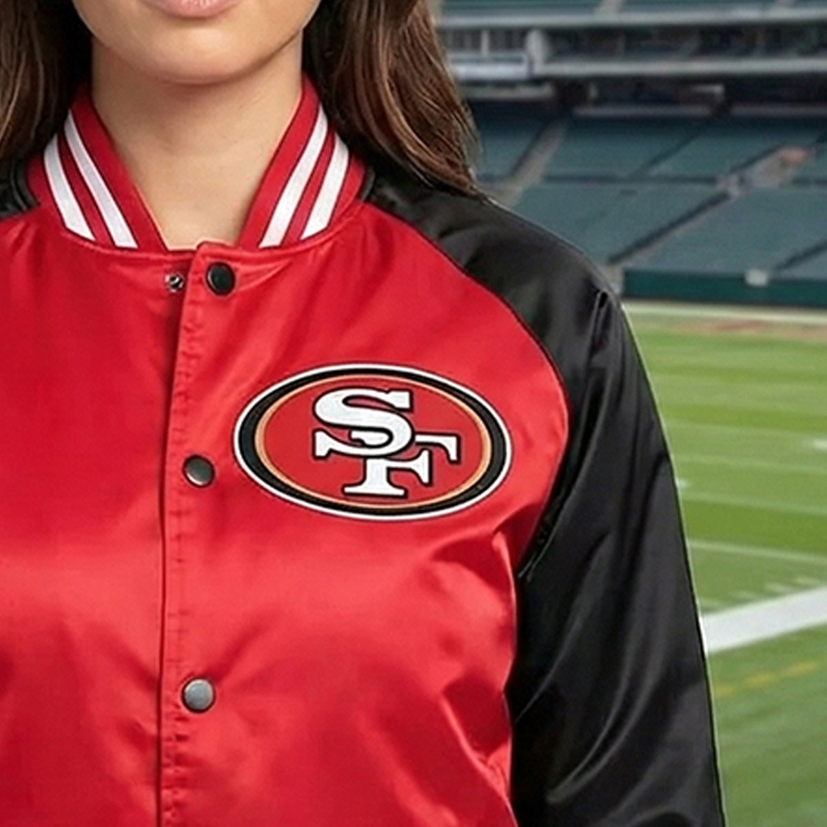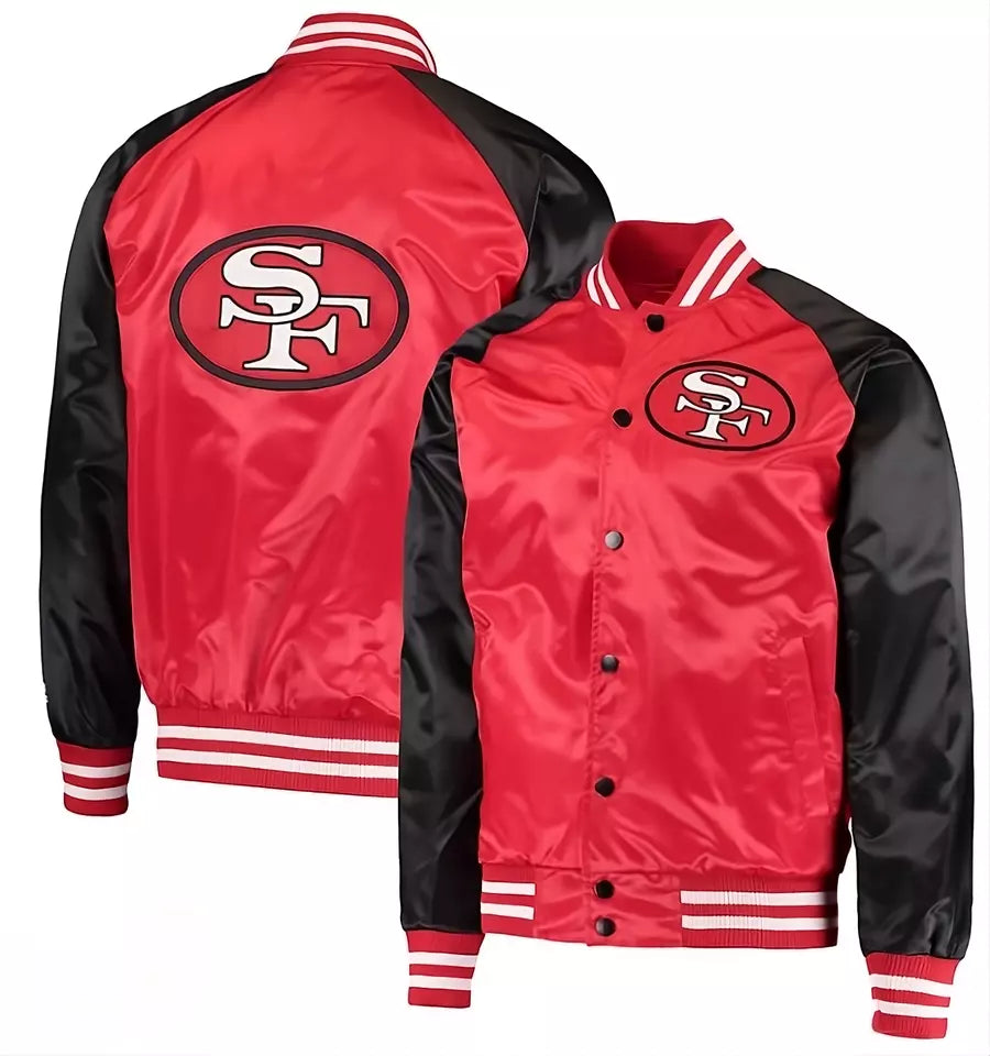 San Francisco 49ers Satin Letterman Varsity Jacket full-snap Embroidery logo red and black - NFL