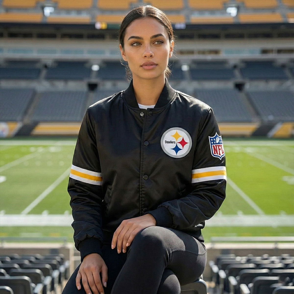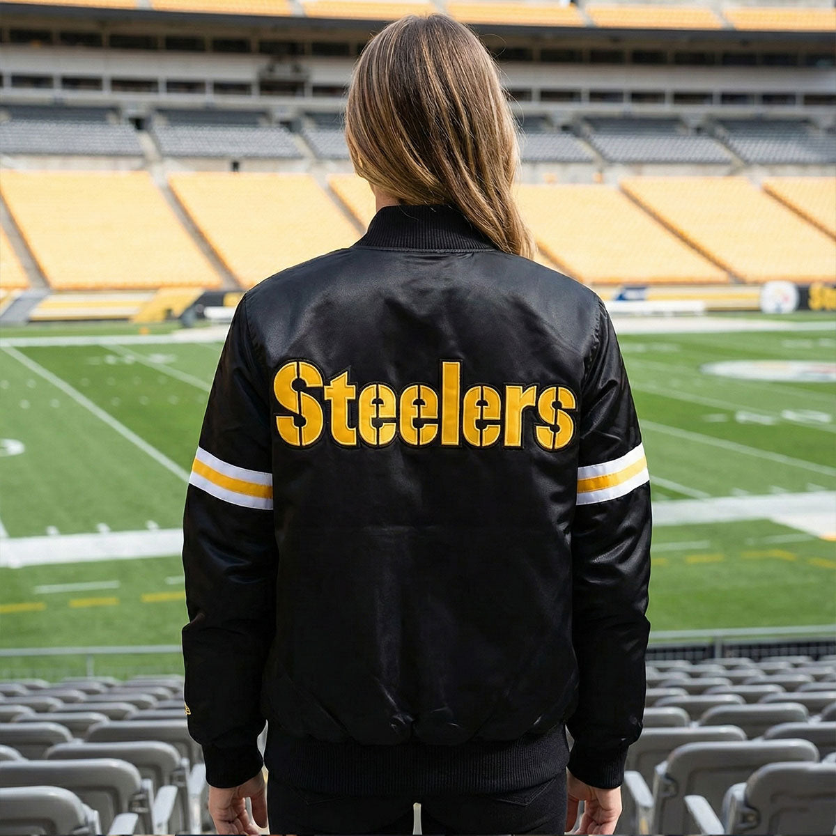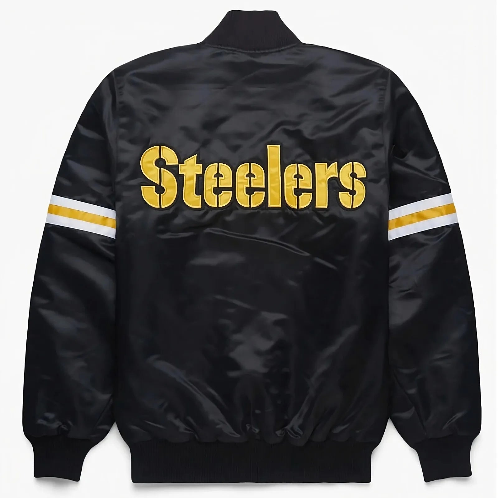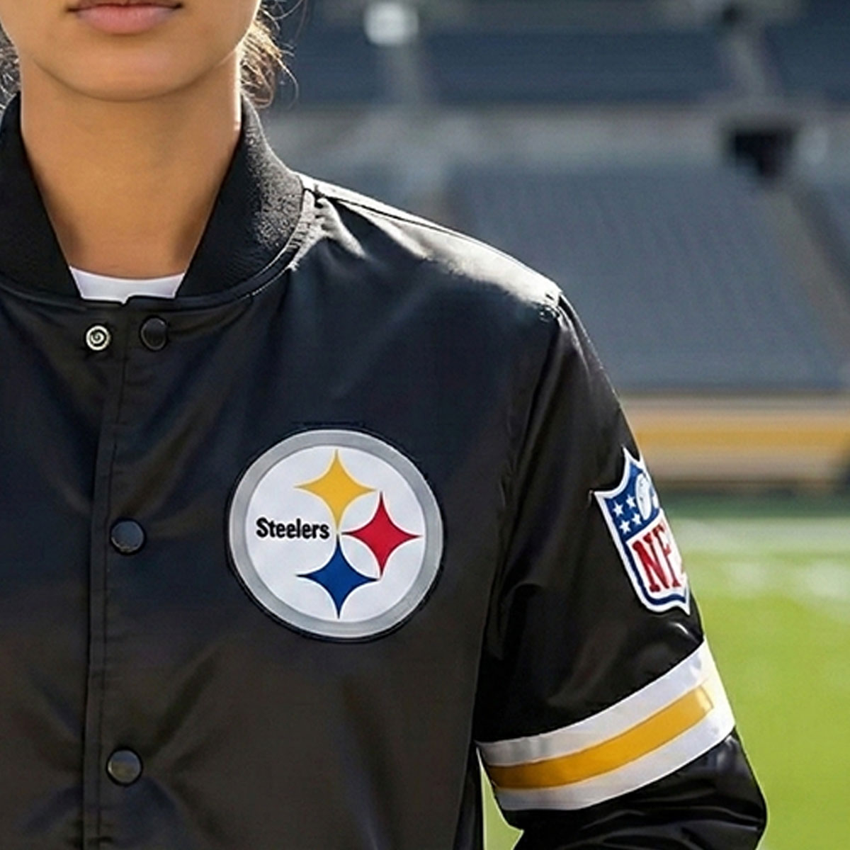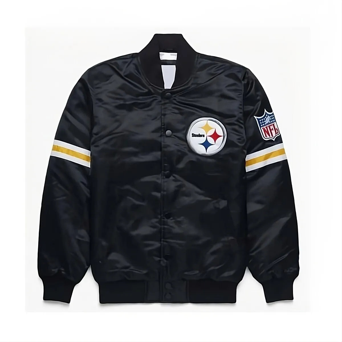 Pittsburgh Steelers Black Satin Letterman Varsity Jacket black - NFL