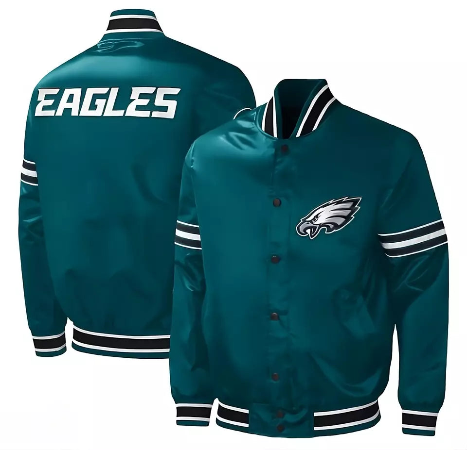 Philadelphia Eagles Full Snap Satin Varsity Jacket Embroidery logos green - NFL