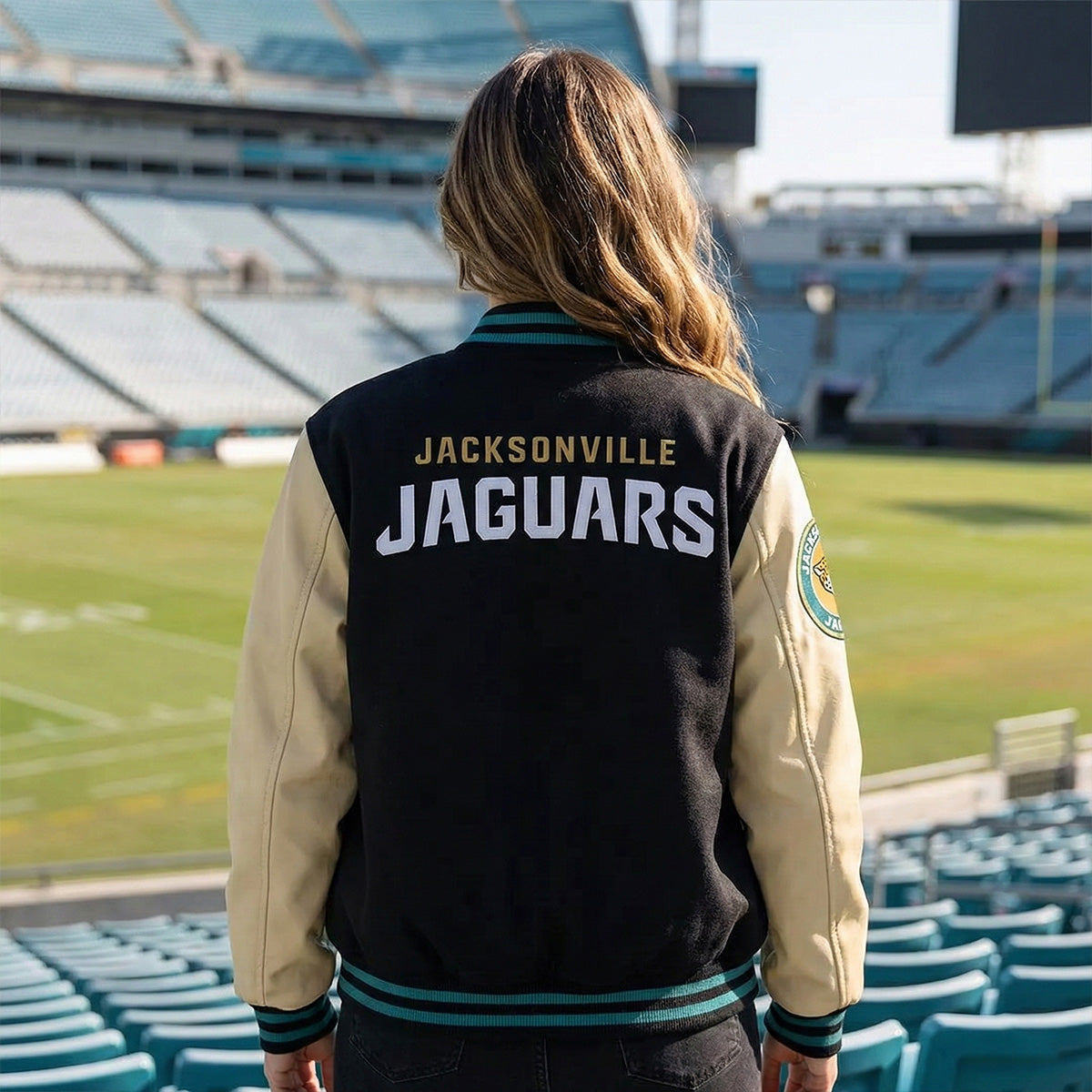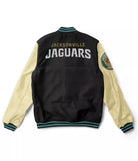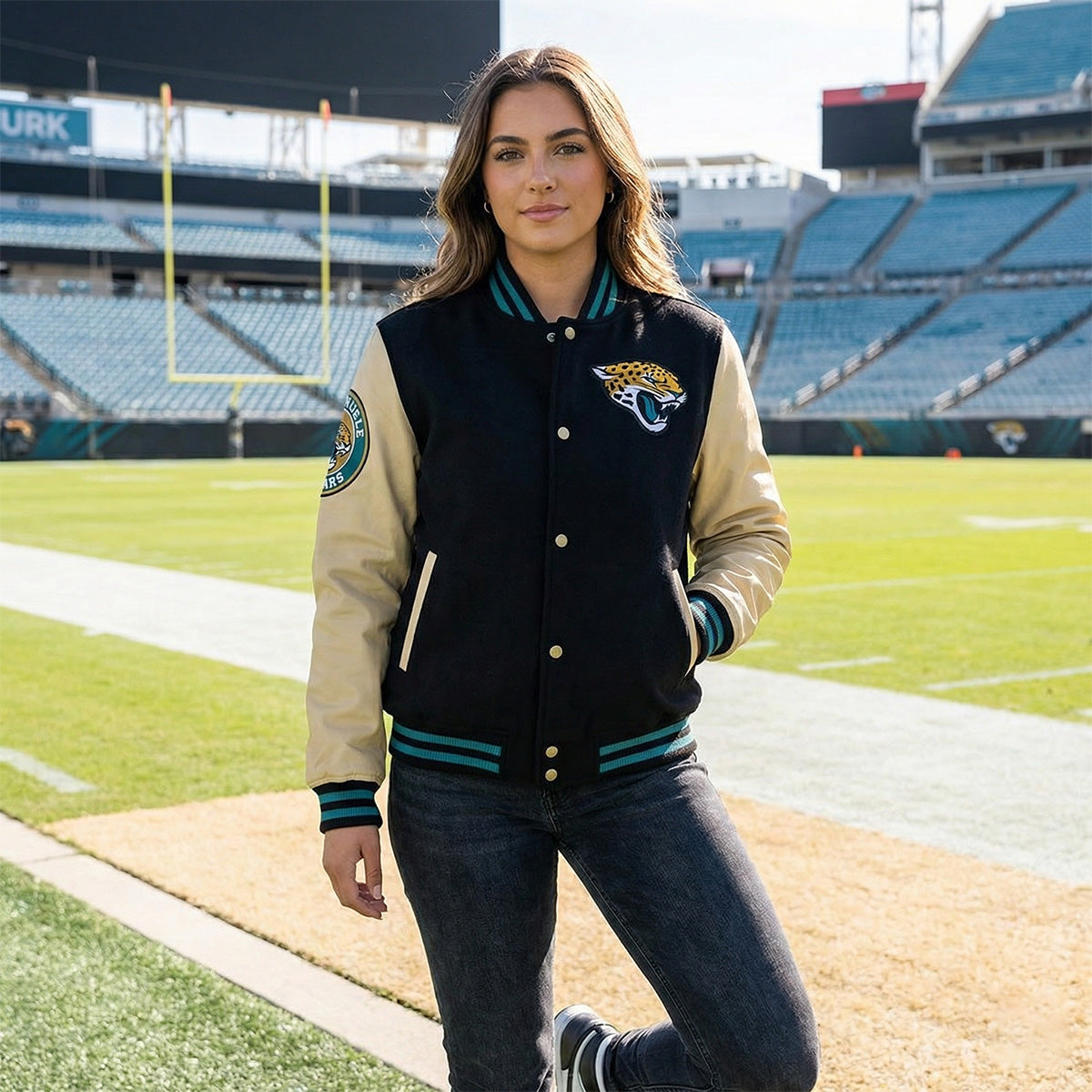 Celebrate your Jacksonville Jaguars pride with this premium letterman varsity jacket that combines authentic NFL team spirit with timeless varsity style. Crafted for true fans who demand quality and heritage in every stitch.