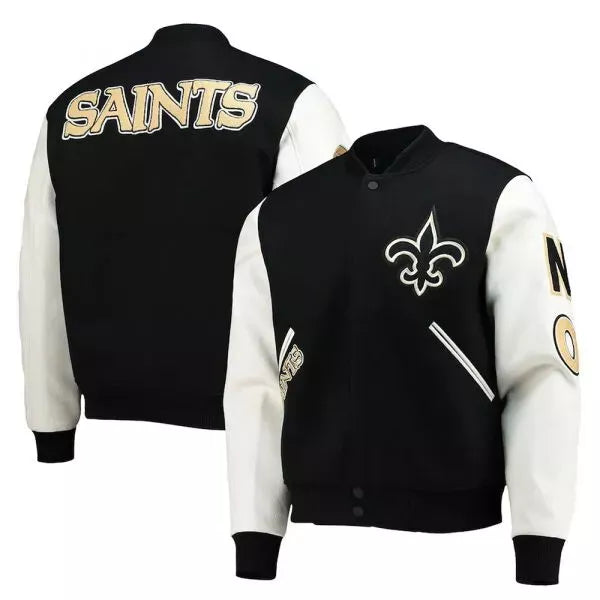 Letterman New Orleans Saints Black and White Varsity Jacket - NFL