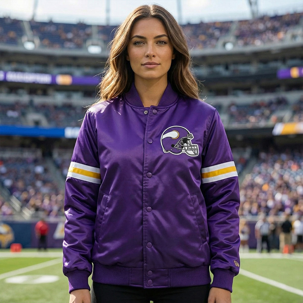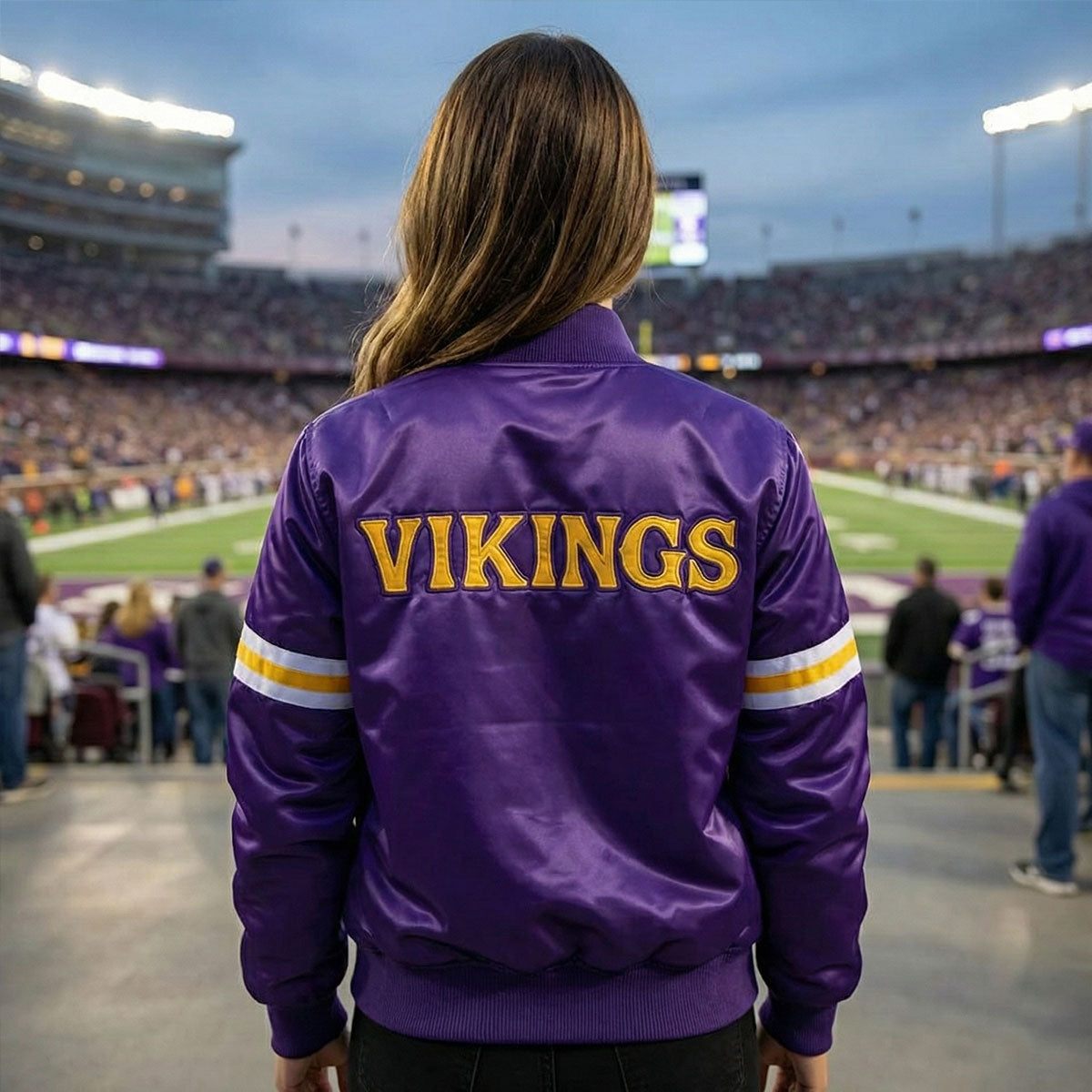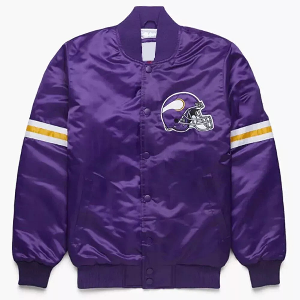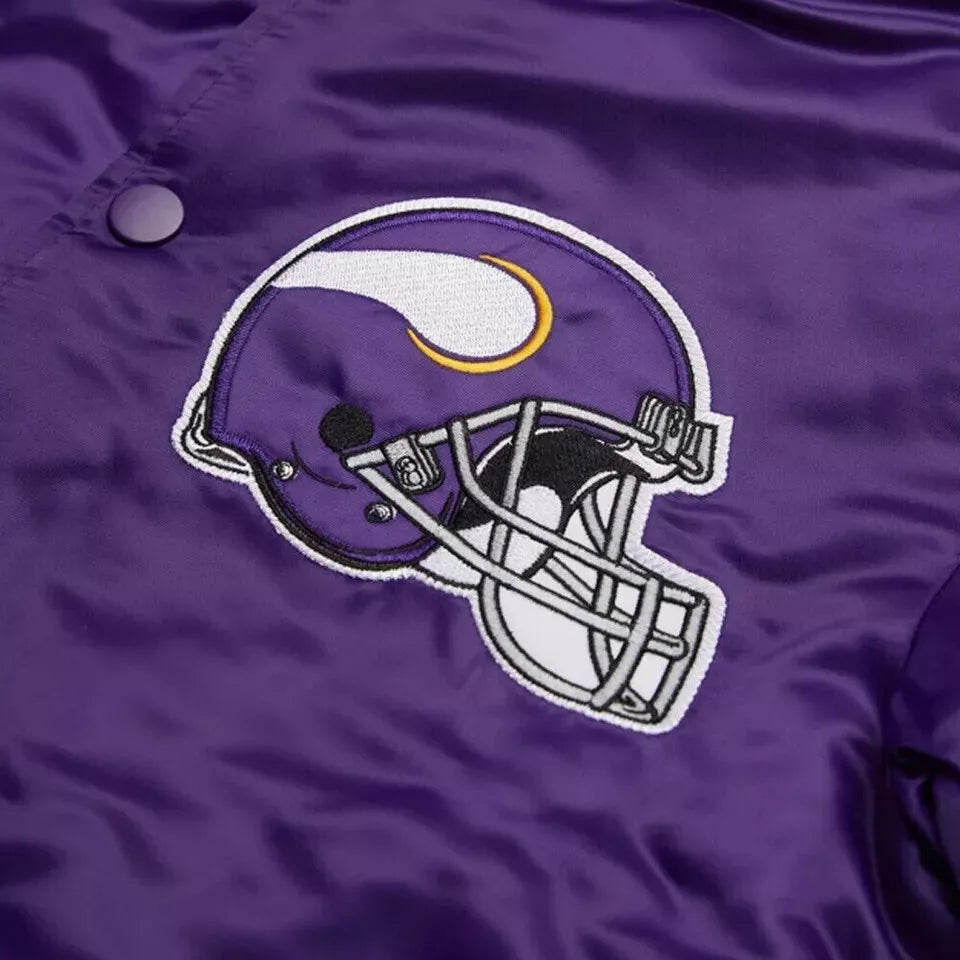 Minnesota Vikings Purple Satin Varsity Jacket – Premium NFL Letterman Style