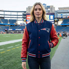 Women's New England Patriots Varsity Jacket - Blue Wool with Red Leather Sleeves - NFL