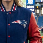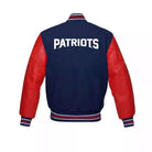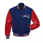 Show your Patriots pride with this premium varsity jacket that combines classic letterman craftsmanship with authentic NFL team spirit. Featuring a blue wool body and genuine red leather sleeves in the iconic team colors, this jacket is built for fans who demand quality and timeless style.