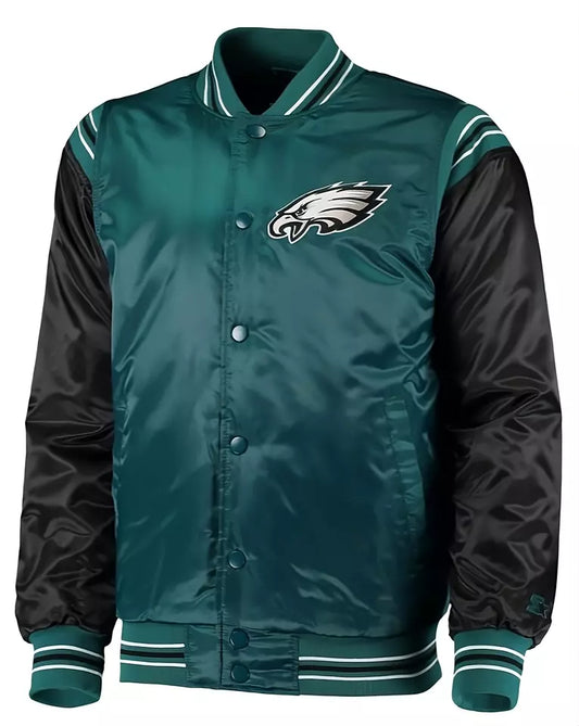 Display your Philadelphia Eagles pride in style with the Full Snap Satin Varsity Jacket. Crafted...