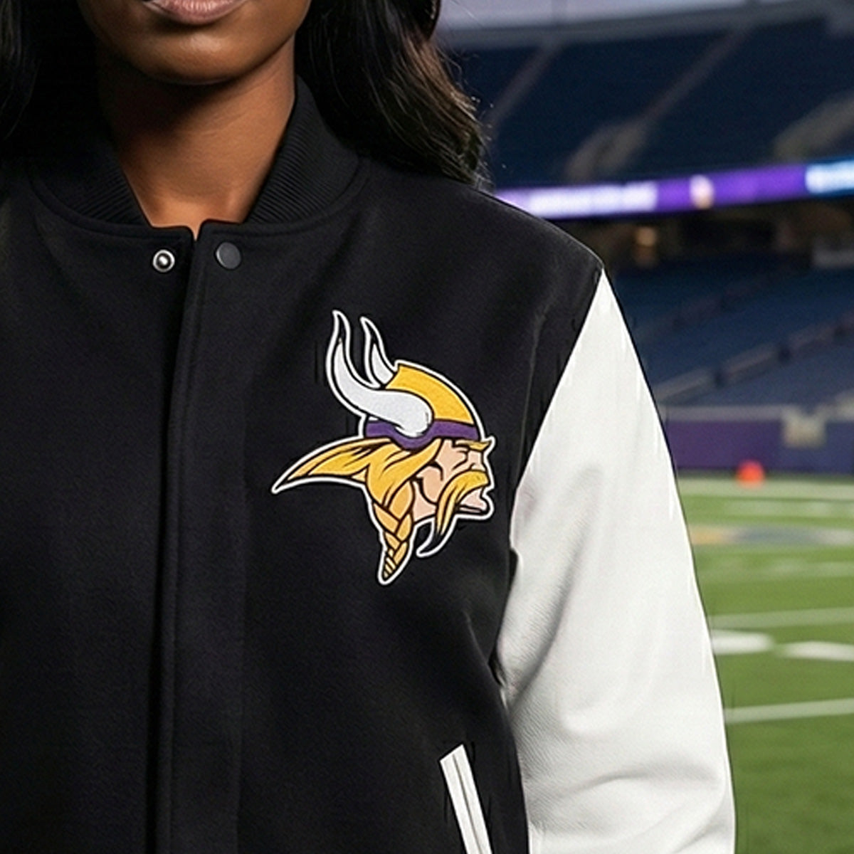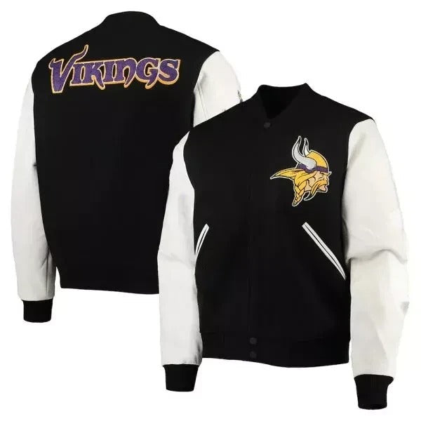 Letterman Minnesota Vikings Black and White Varsity Jacket - NFL