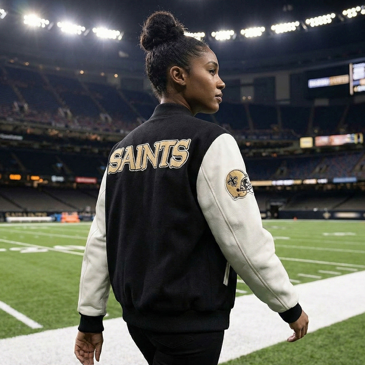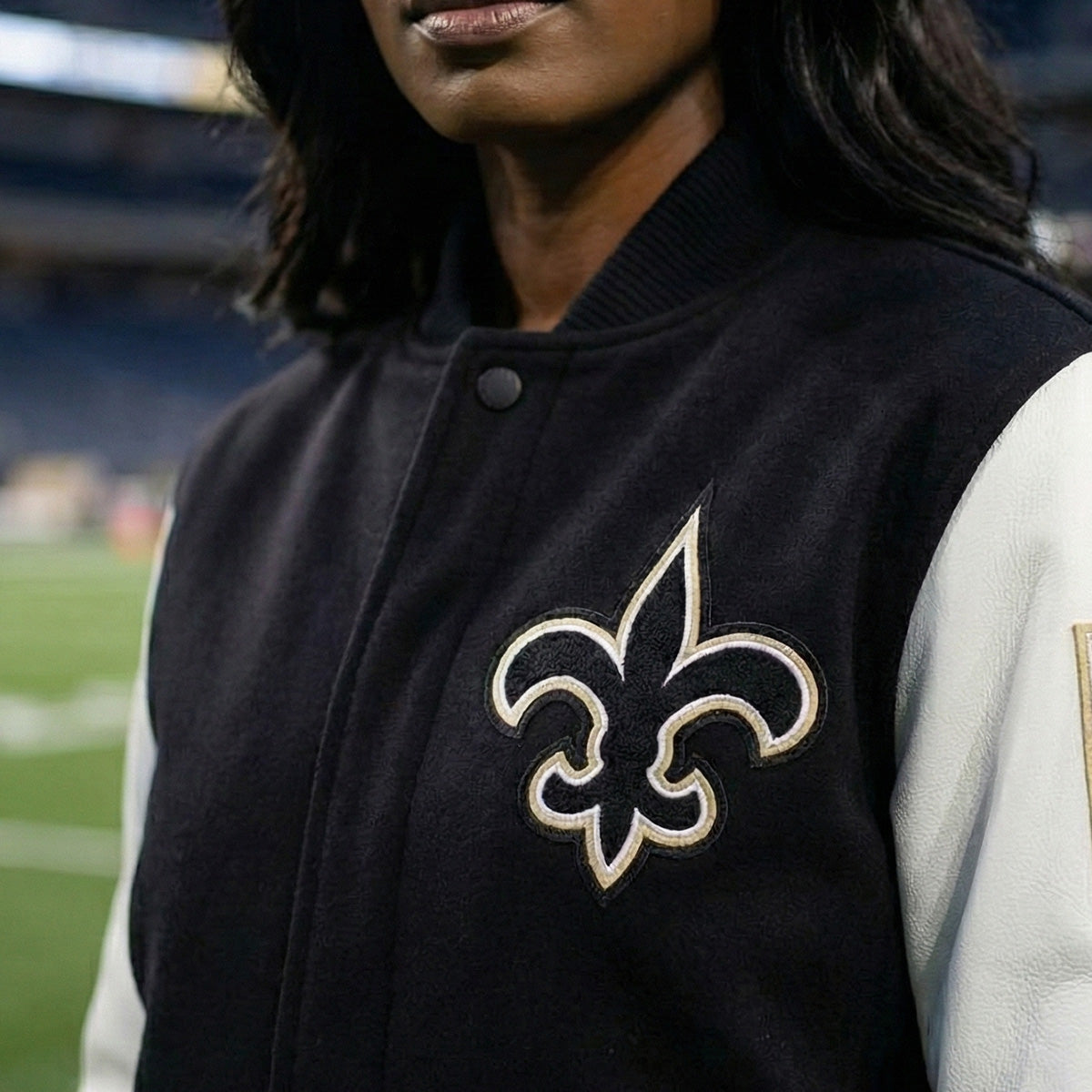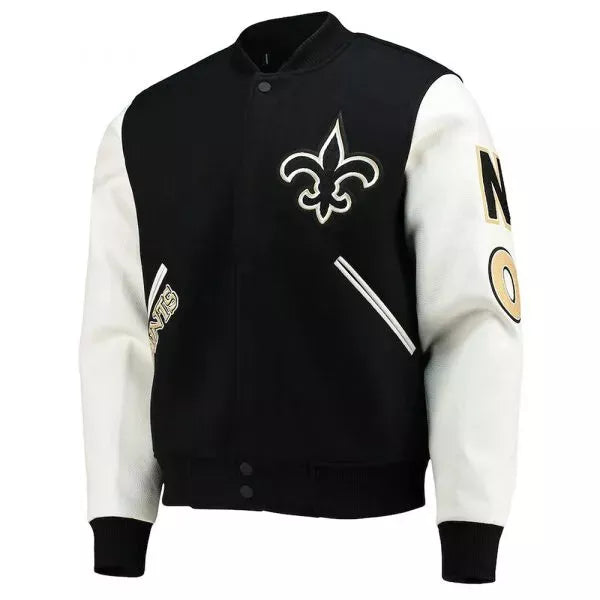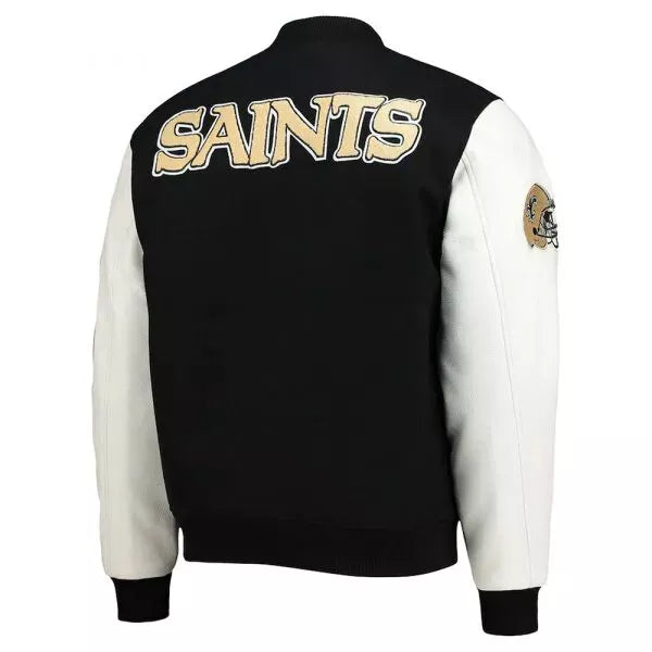 Letterman New Orleans Saints Black and White Varsity Jacket - NFL
