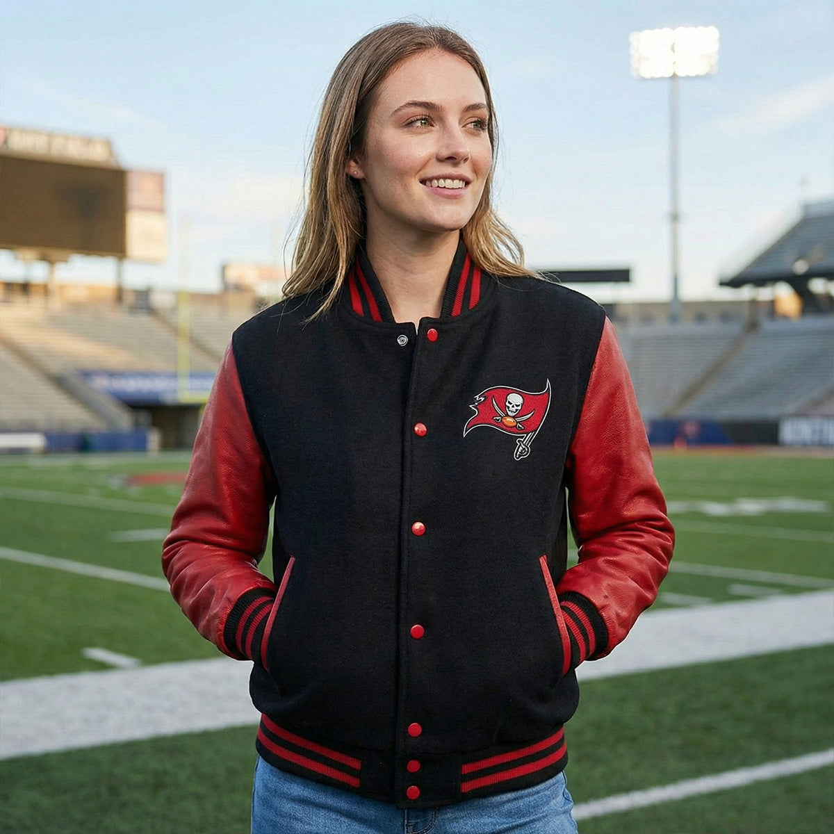 Letterman Tampa Bay Buccaneers Black and Red Varsity Jacket - NFL