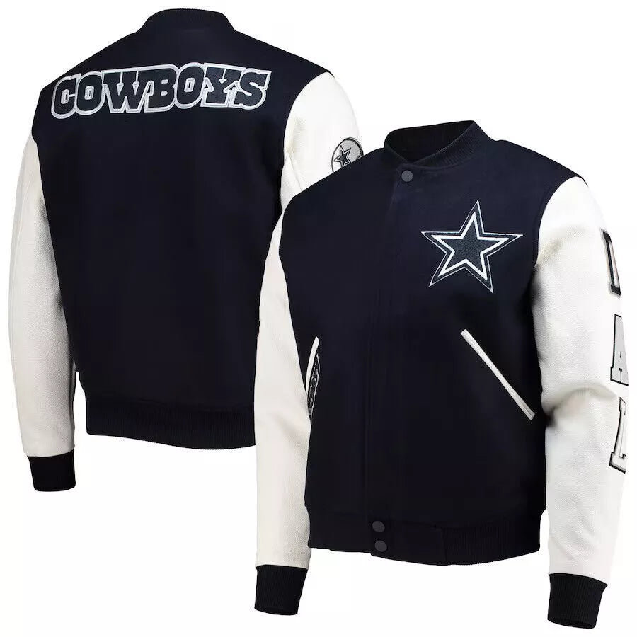 Letterman Dallas Cowboys Blue and White Varsity Jacket - NFL