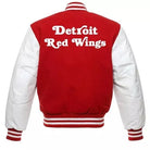 Detroit Red Wings Letterman Varsity jacket wool & genuine leather sleeves red and white