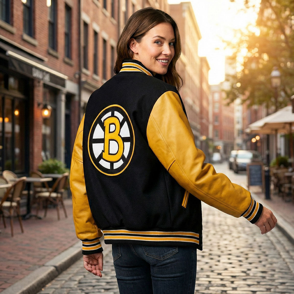 Letterman Boston Bruins Black and Yellow Varsity Jacket - NHL