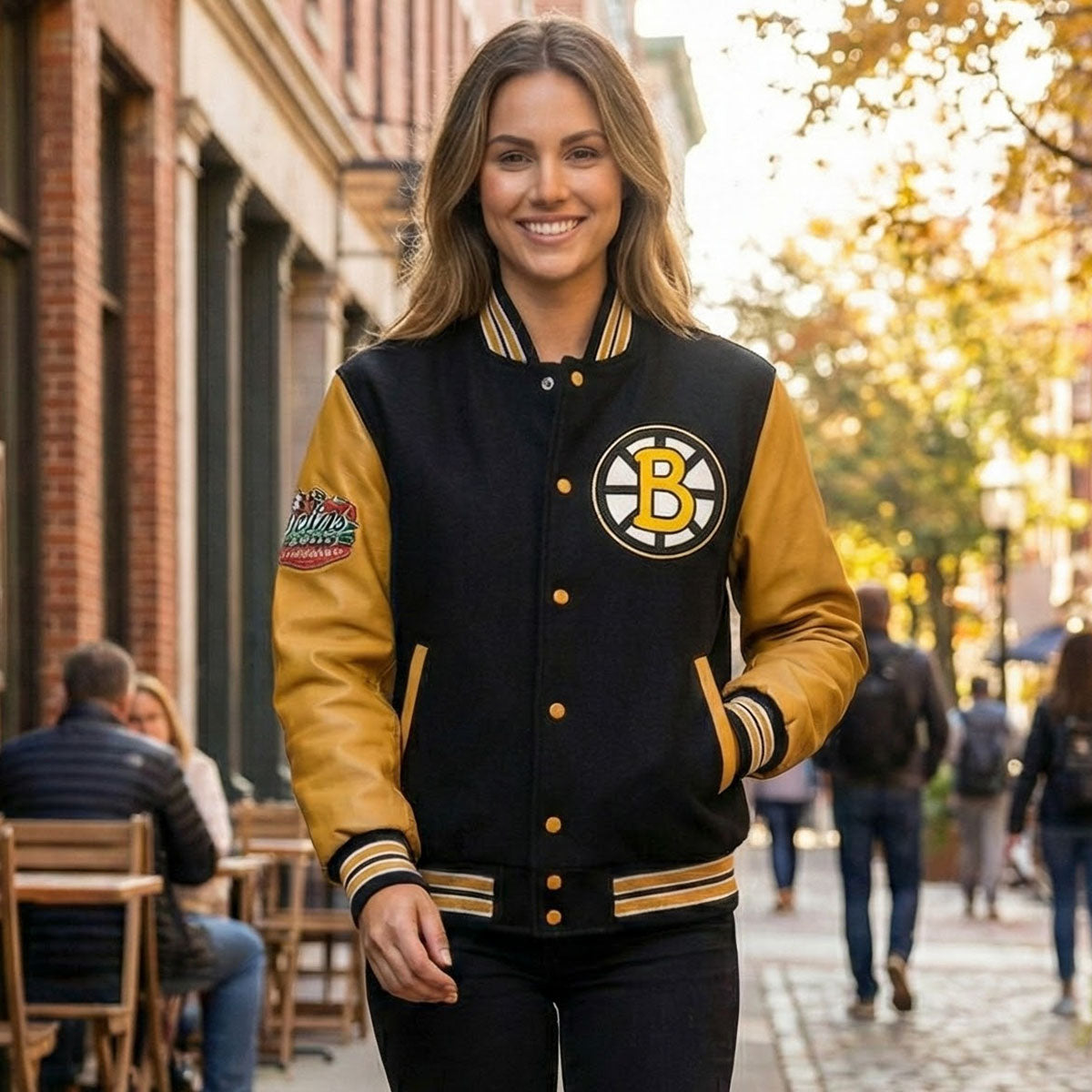 The Letterman Boston Bruins Varsity Jacket is more than just outerwear; it’s a statement piece for any true fan. Whether you’re supporting your team from the stands or rocking a casual look on the streets, this jacket provides style and comfort all season long