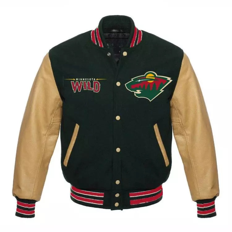Letterman Minnesota Wild Green and harvest gold Varsity Jacket - NHL