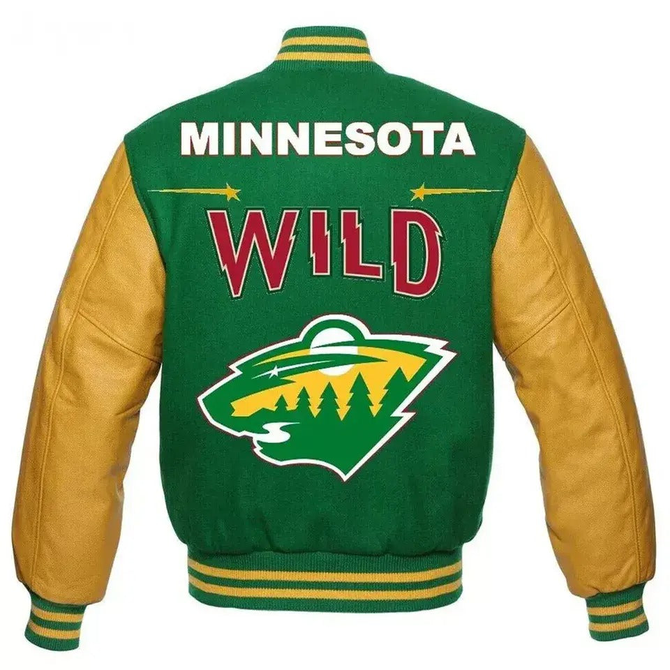 Celebrate your Minnesota Wild pride with this striking lite green and yellow varsity jacket. Crafted for true NHL fans, this letterman-style jacket combines premium materials with authentic team spirit.