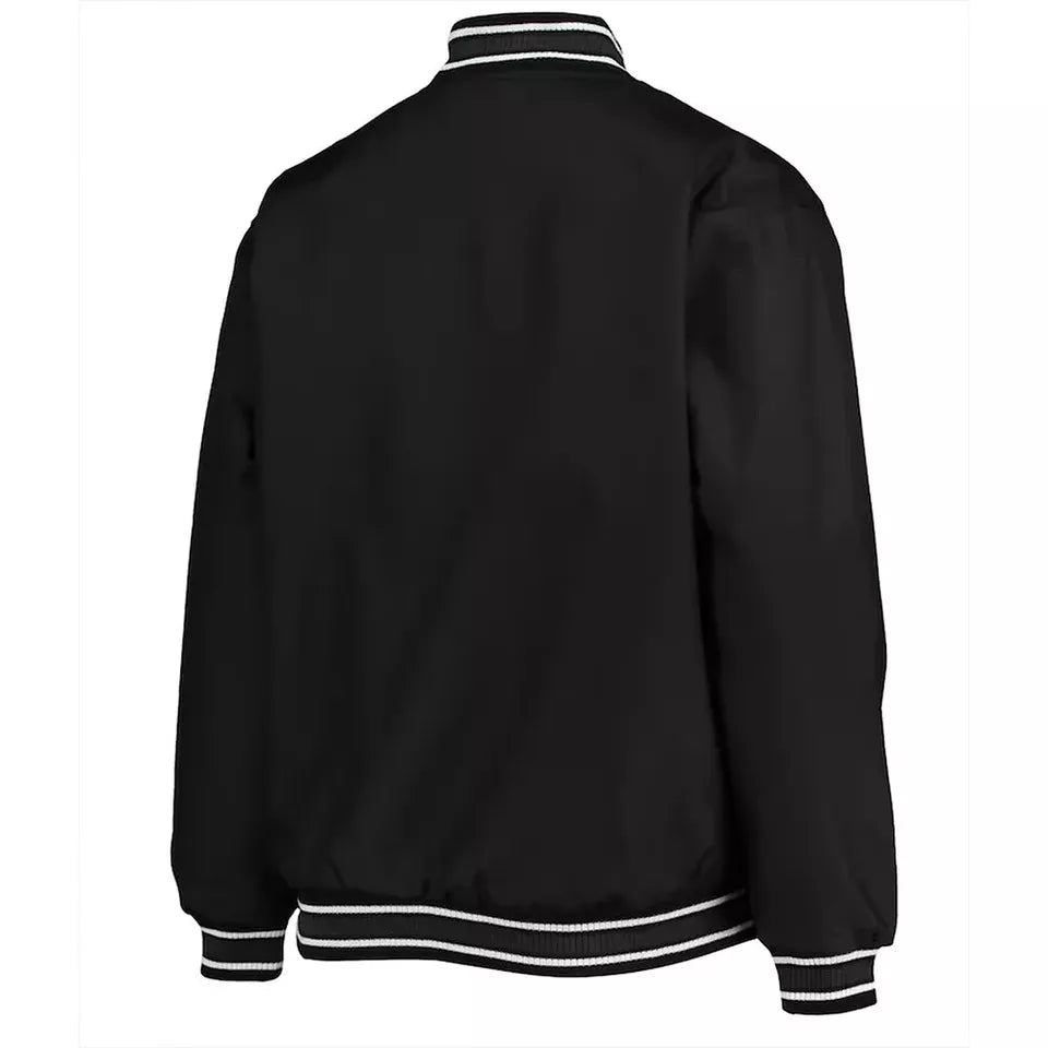 Full-snap closure for easy wear and a timeless varsity style.