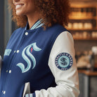 Letterman Seattle Kraken Blue and White Varsity Jacket - NHL
