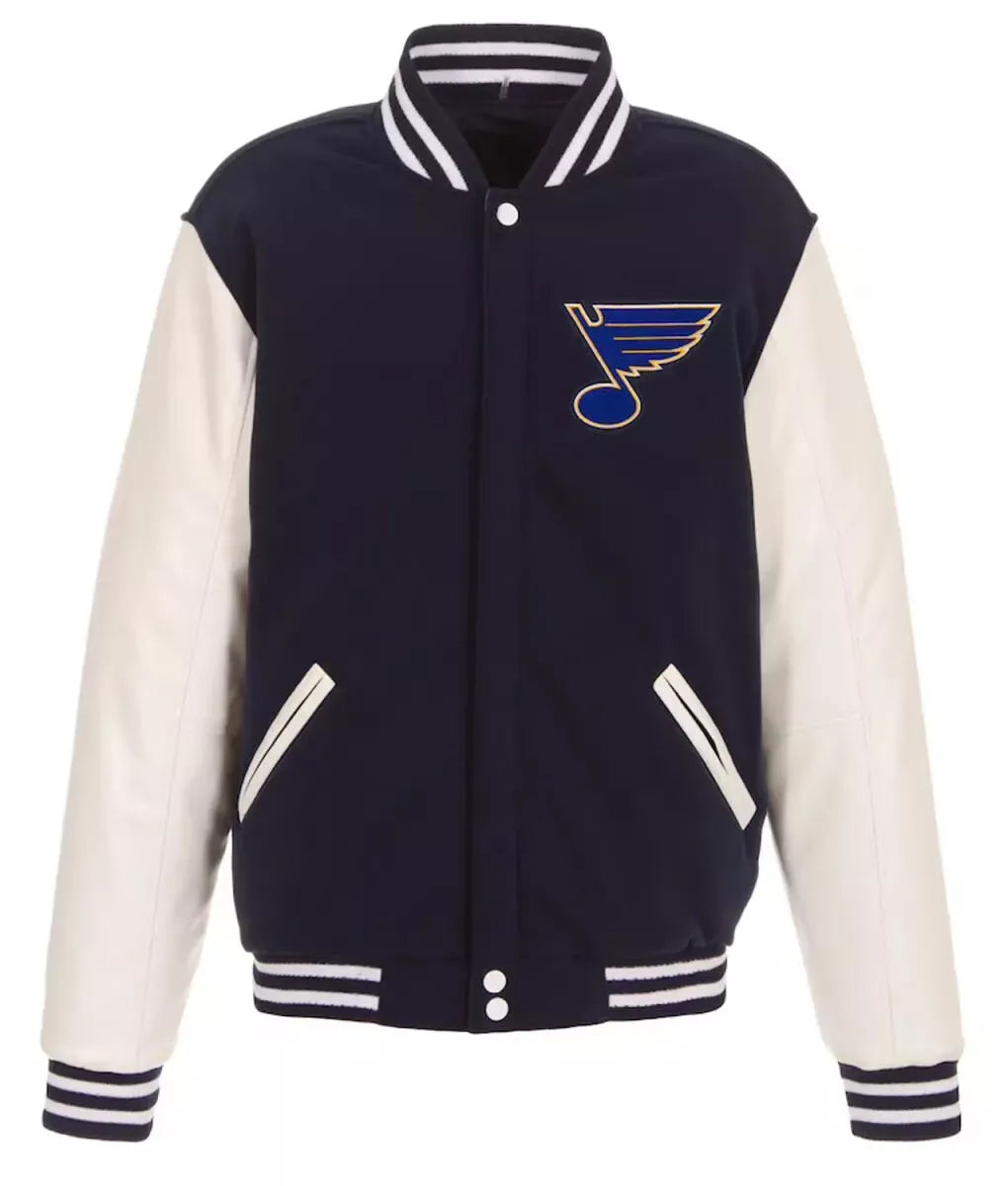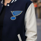 The embroidered St. Louis team logo on the chest boldly displays your loyalty, while the ribbed cuffs, collar, and hem enhance the traditional varsity feel. Perfect for game days, casual outings, or just showing off your love for the team, this jacket will keep you looking sharp and cozy.