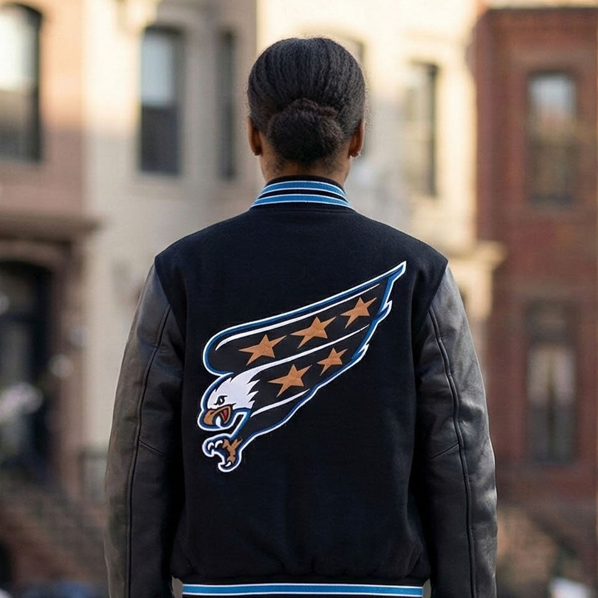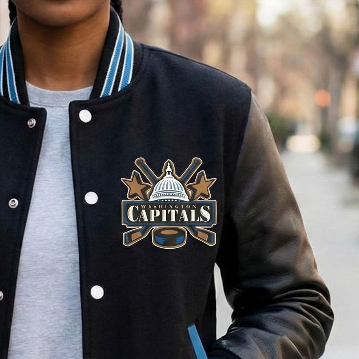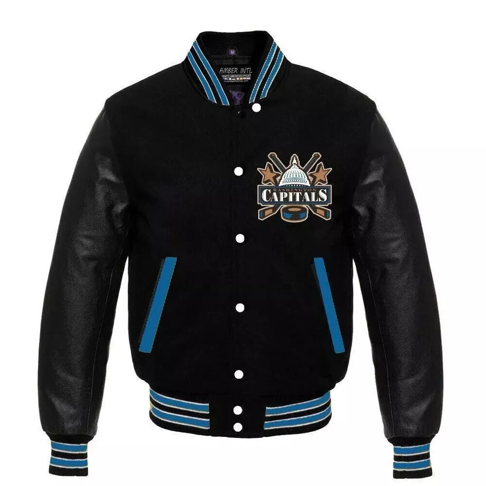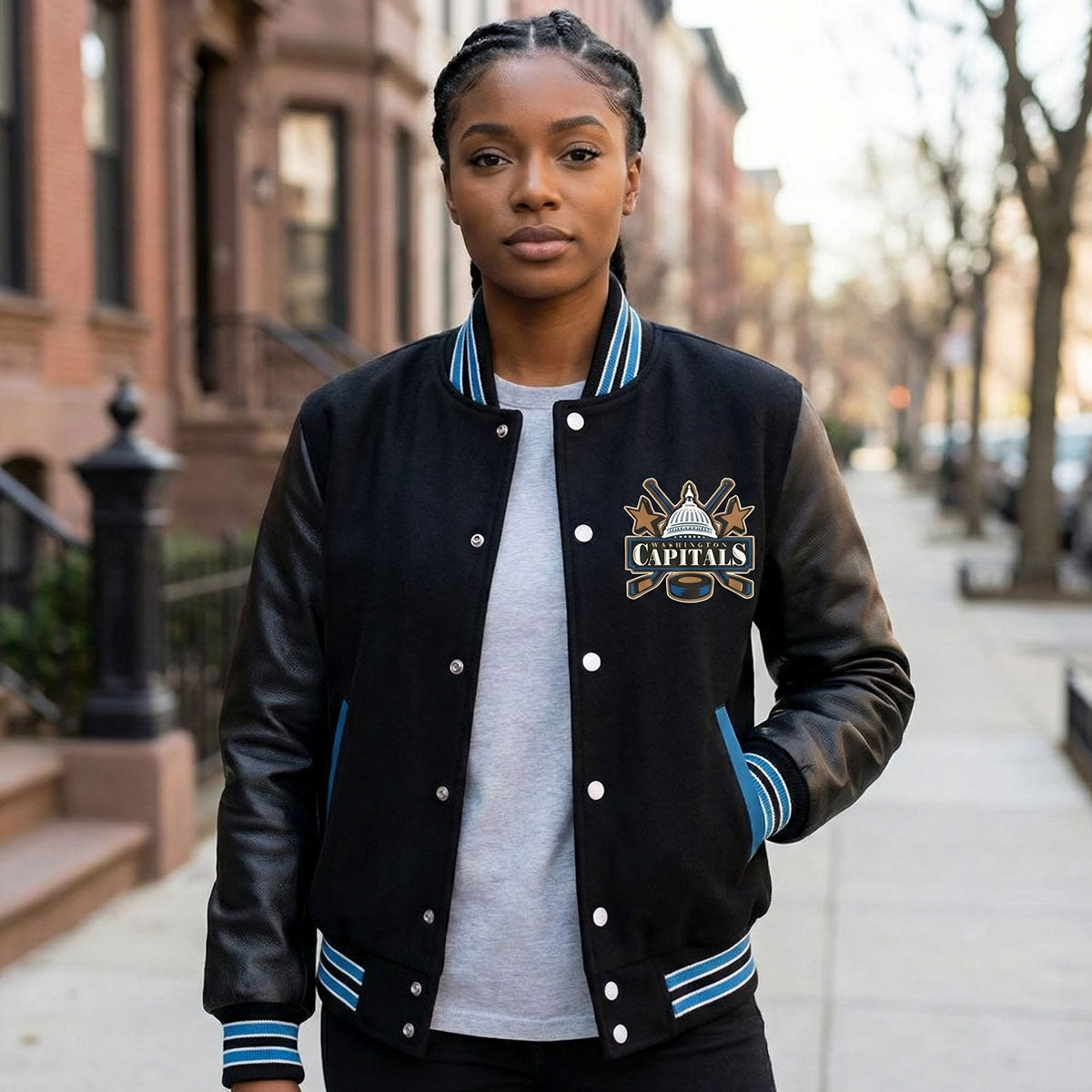 Letterman Washington Capitals Black Wool & Leather Bombers Varsity Jacket Women