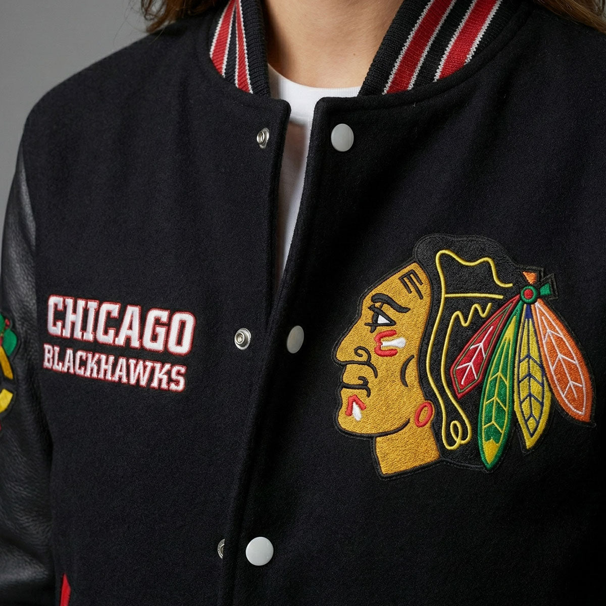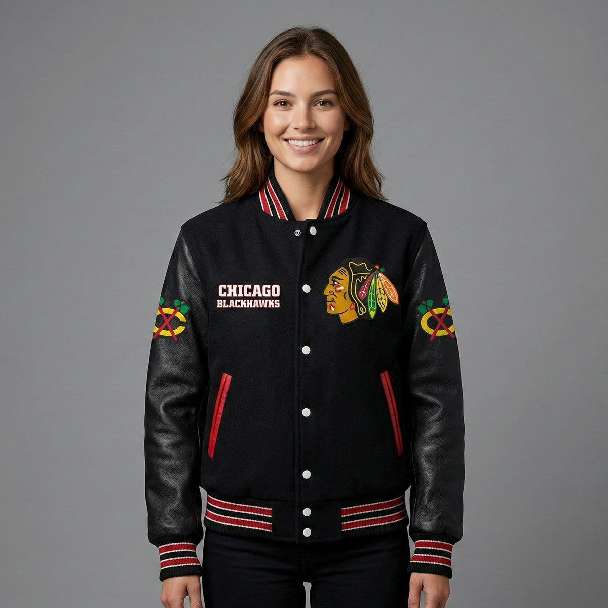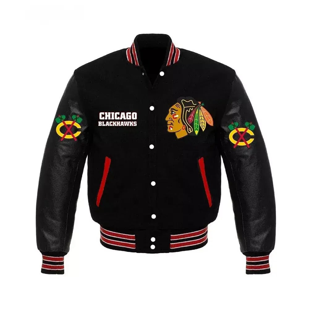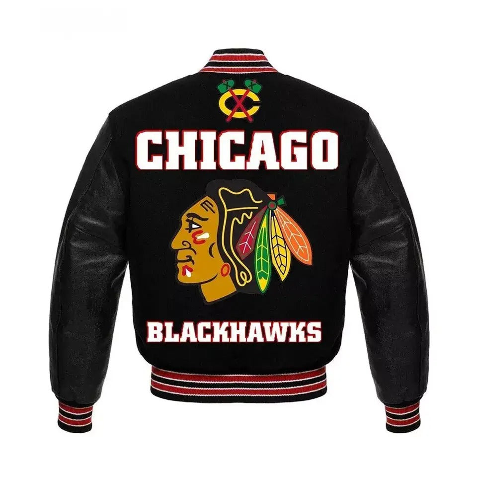 Letterman Chicago Blackhawks Black Color Varsity Jacket - NHL