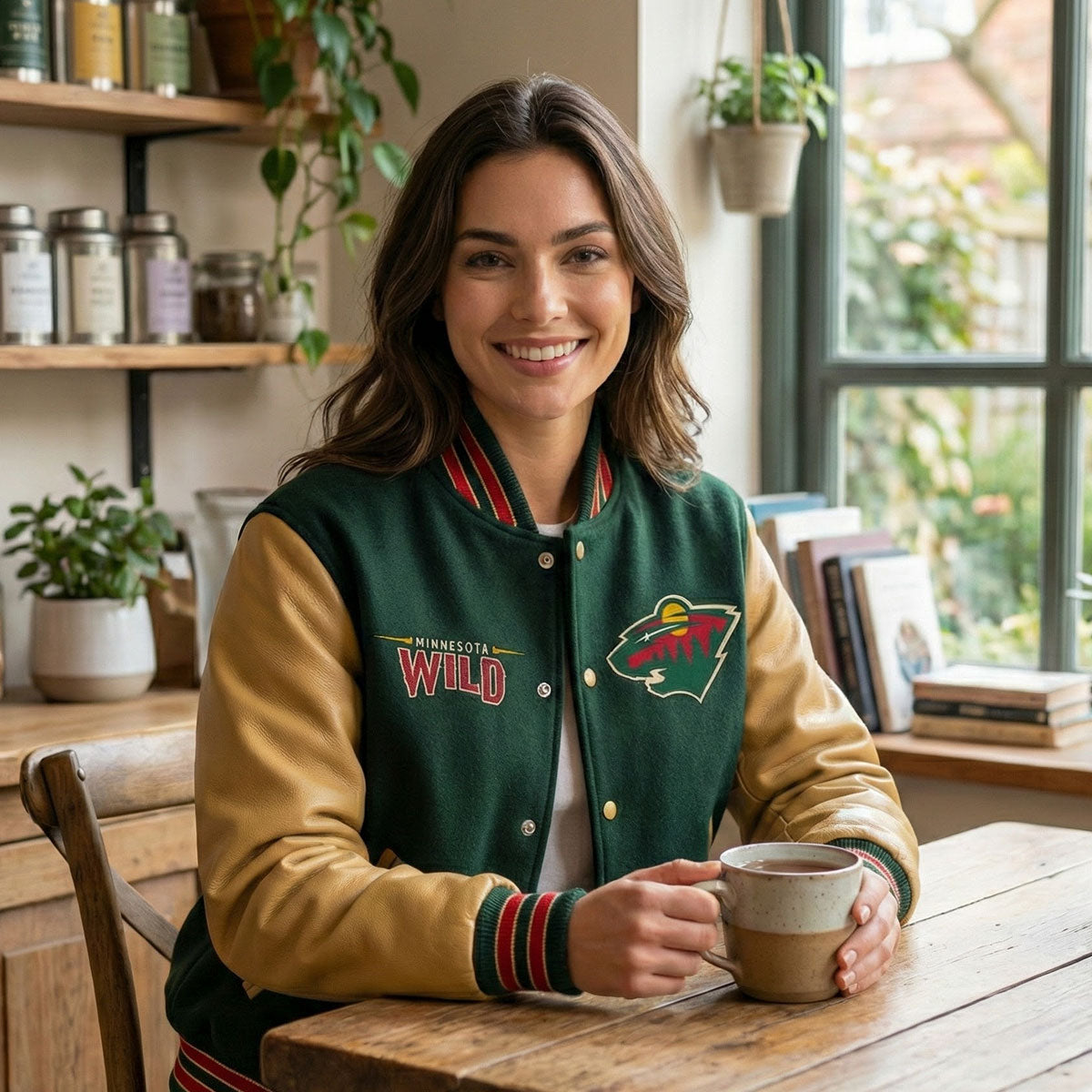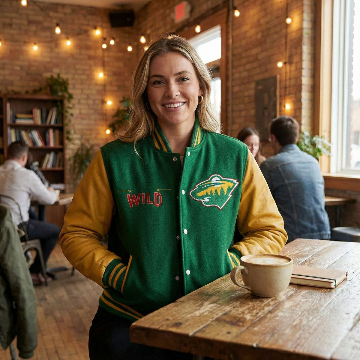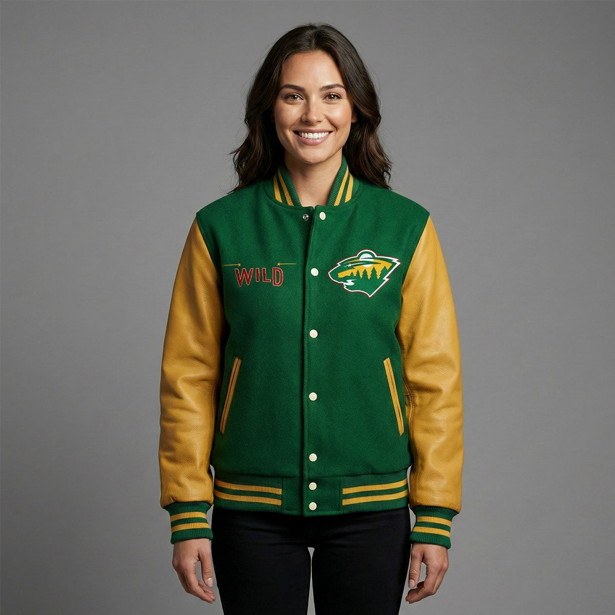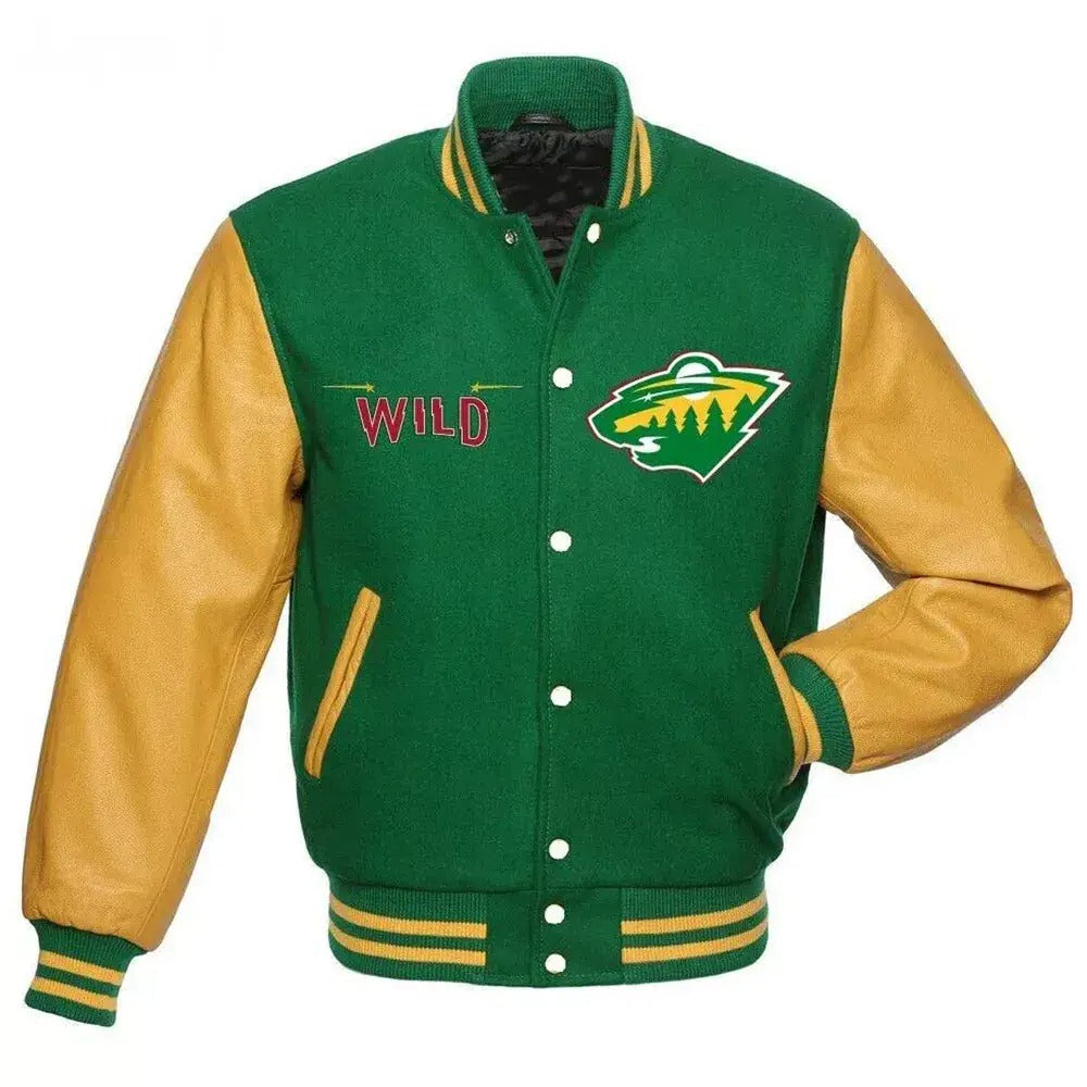 Letterman Minnesota Wild Green and harvest gold Varsity Jacket - NHL